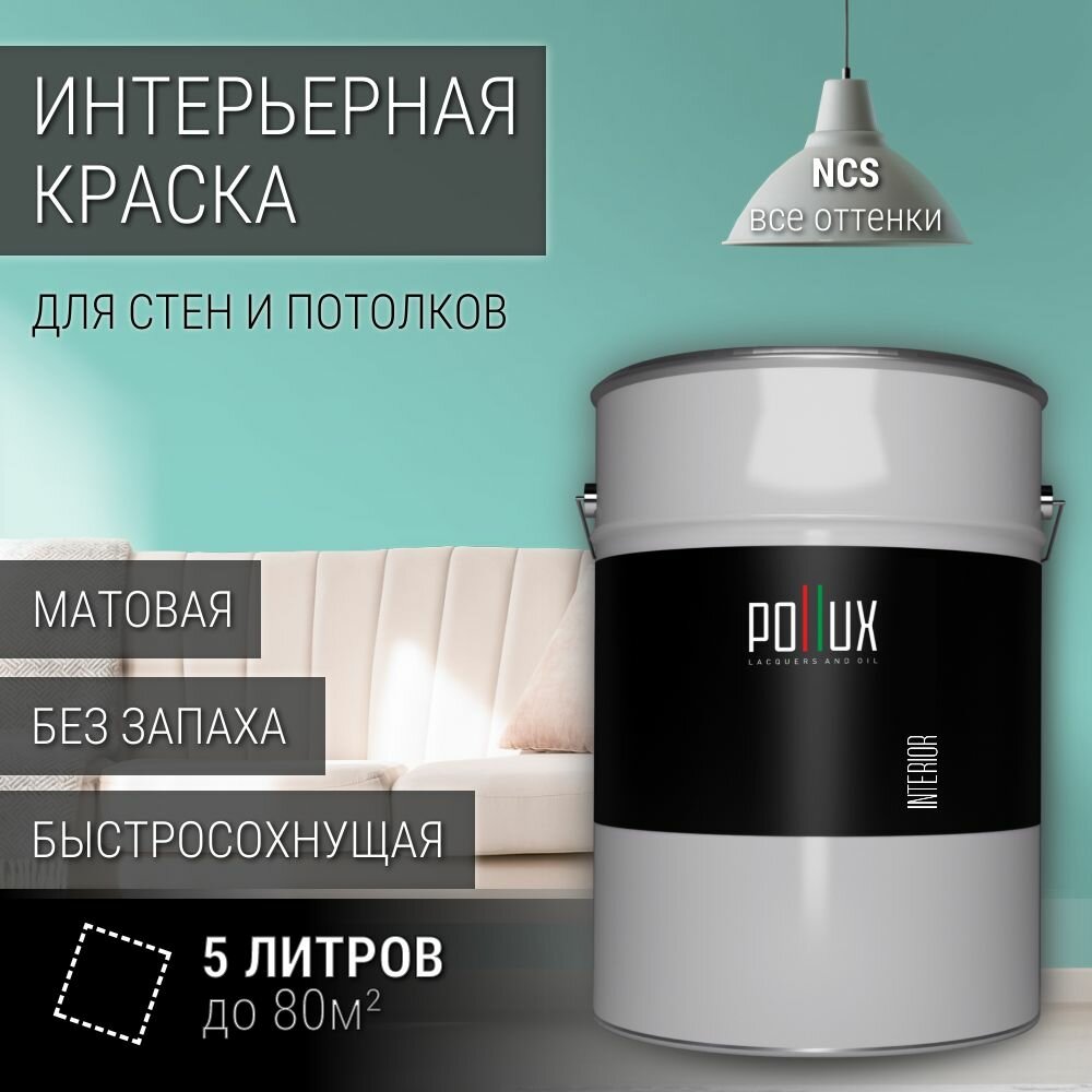 Краска моющаяся интерьерная для стен и потолков, Pollux INTERIOR без запаха, быстросохнущая, акриловая, матовое покрытие, цвет NCS S 1020-B60G, 5л.