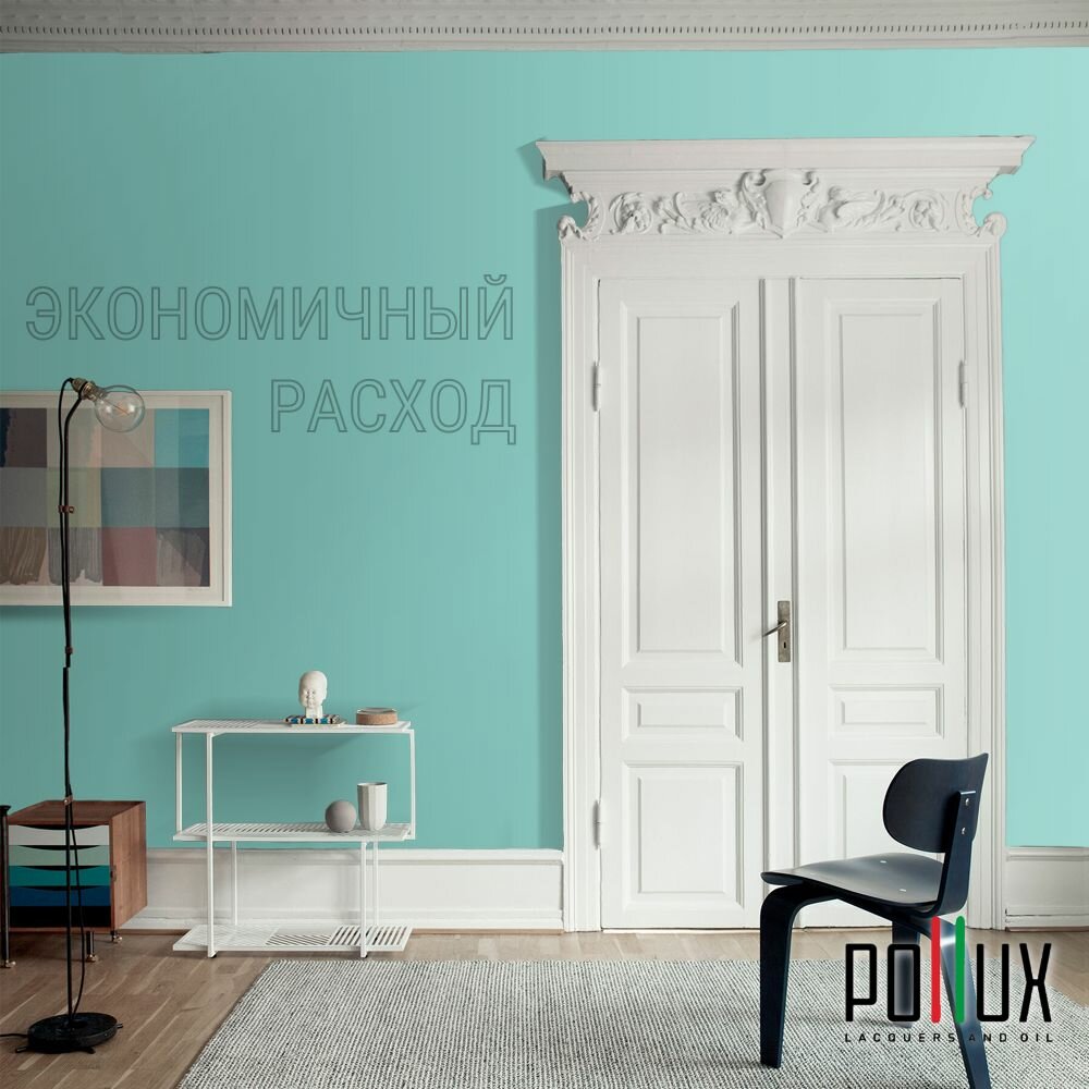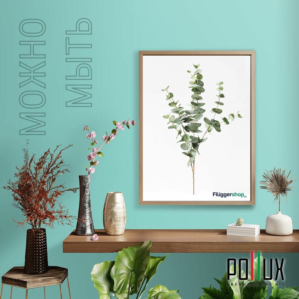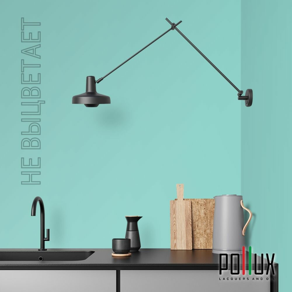 Краска моющаяся интерьерная для стен и потолков, Pollux INTERIOR без запаха, быстросохнущая, акриловая, матовое покрытие, цвет NCS S 1030-B60G, 1л.
