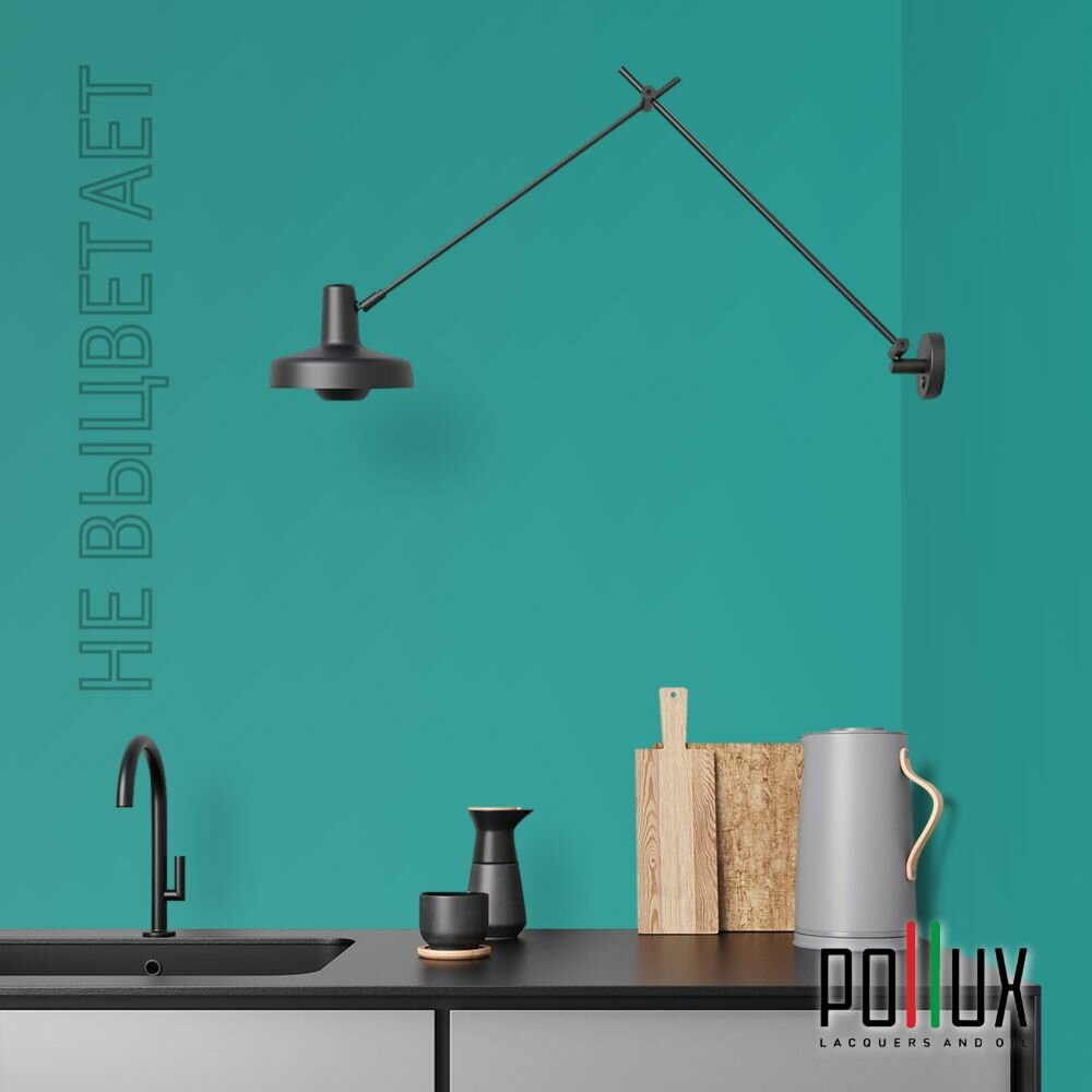 Краска моющаяся интерьерная для стен и потолков, Pollux INTERIOR без запаха, быстросохнущая, акриловая, матовое покрытие, цвет NCS S 4050-B60G, 1л.