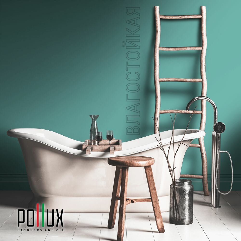 Краска моющаяся интерьерная для стен и потолков, Pollux INTERIOR без запаха, быстросохнущая, акриловая, матовое покрытие, цвет NCS S 1050-B60G, 1л.