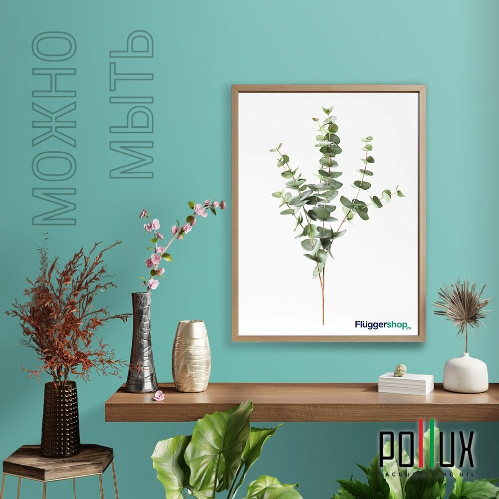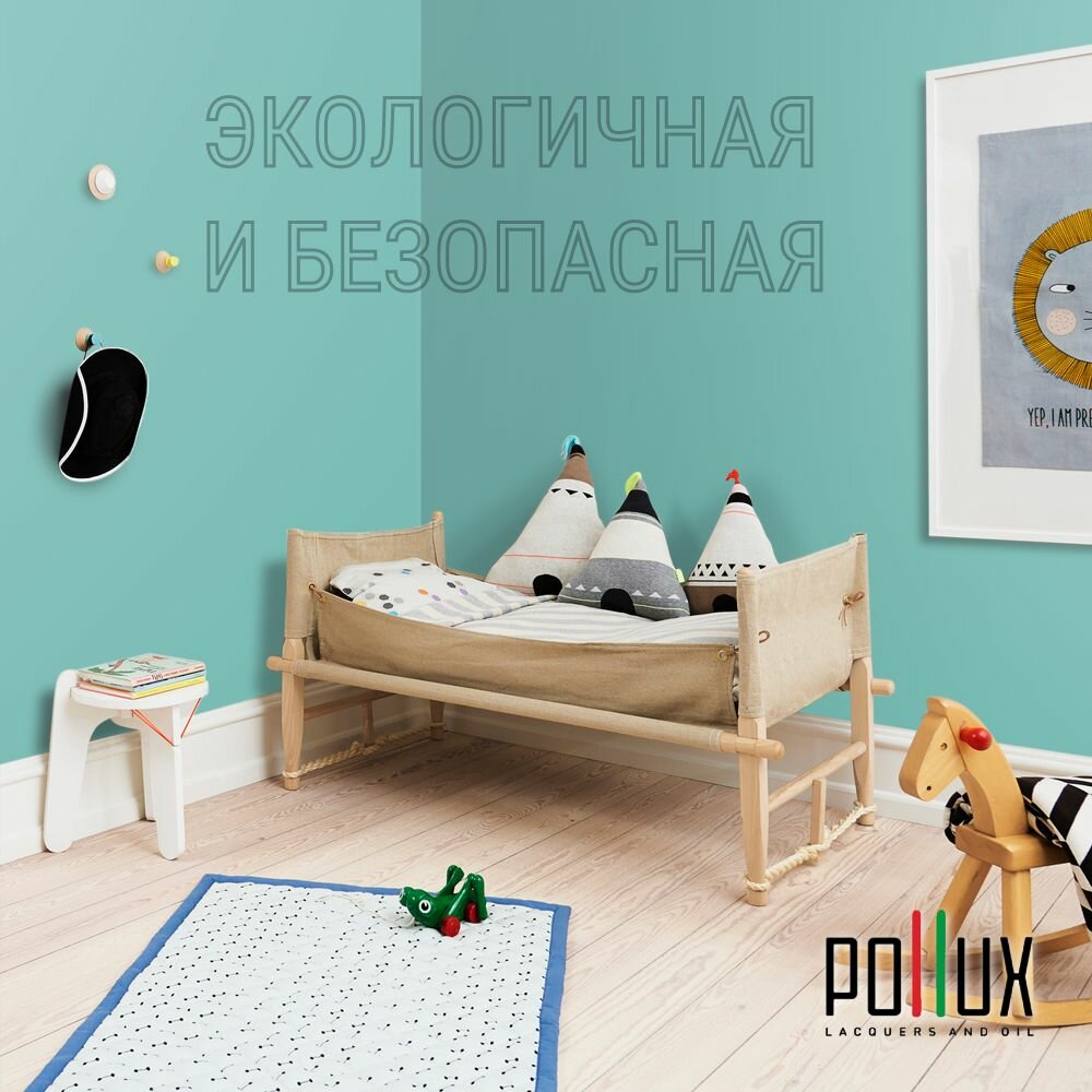 Краска моющаяся интерьерная для стен и потолков, Pollux INTERIOR без запаха, быстросохнущая, акриловая, матовое покрытие, цвет NCS S 1030-B60G, 1л.