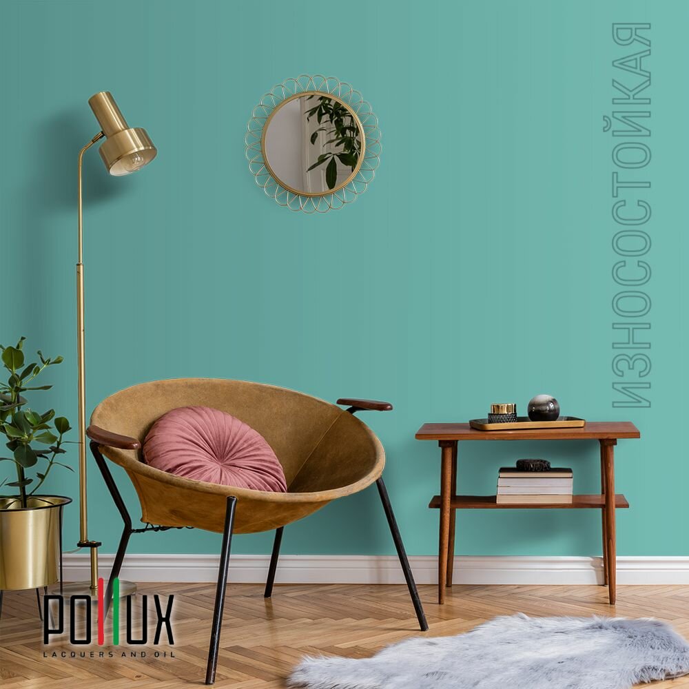 Краска моющаяся интерьерная для стен и потолков, Pollux INTERIOR без запаха, быстросохнущая, акриловая, матовое покрытие, цвет NCS S 4050-B60G, 1л.