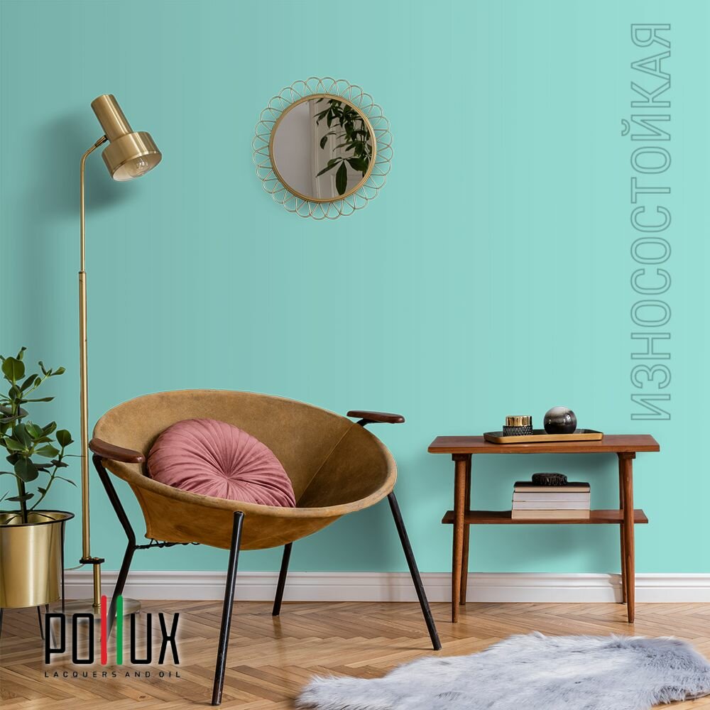 Краска моющаяся интерьерная для стен и потолков, Pollux INTERIOR без запаха, быстросохнущая, акриловая, матовое покрытие, цвет NCS S 0530-B60G, 1л.