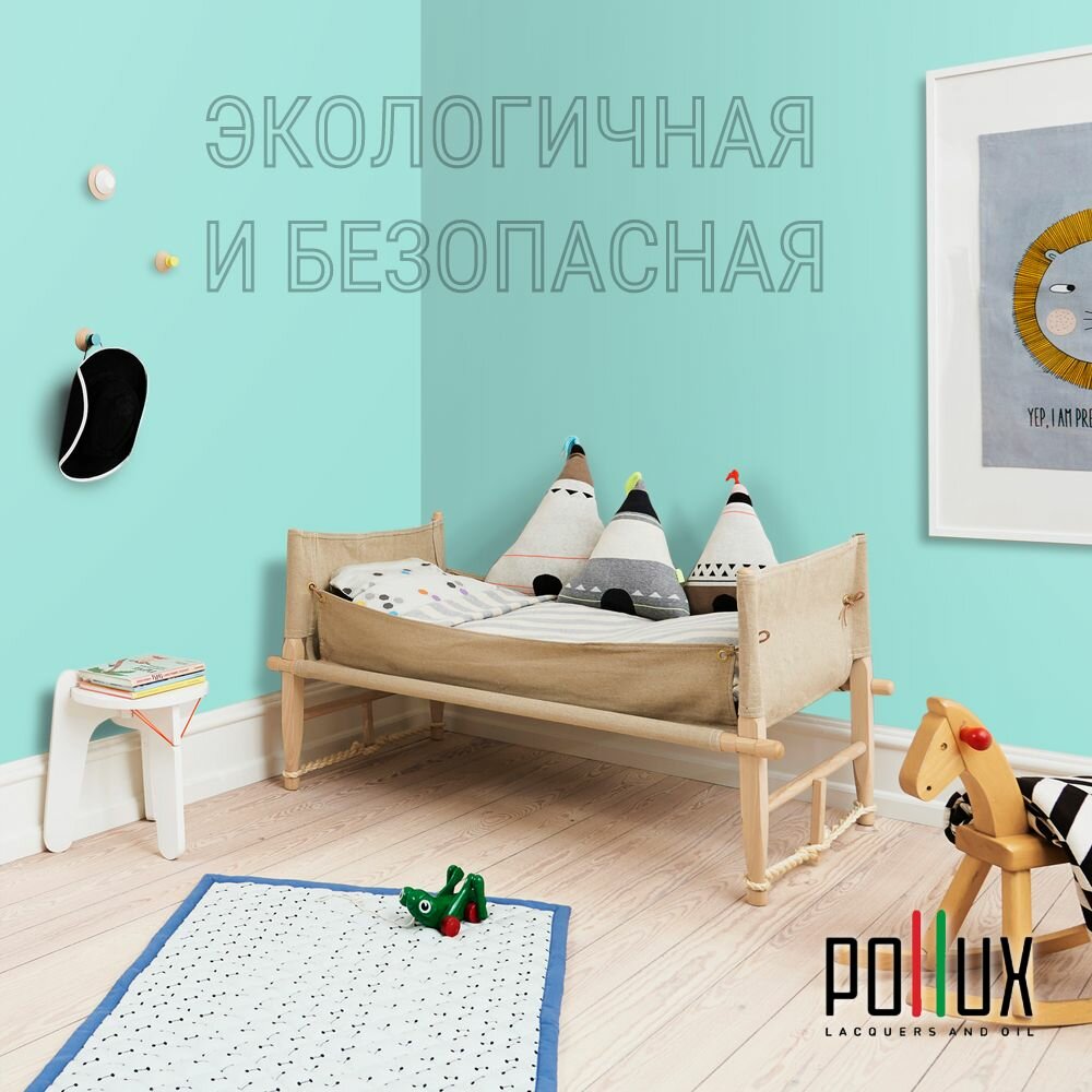 Краска моющаяся интерьерная для стен и потолков, Pollux INTERIOR без запаха, быстросохнущая, акриловая, матовое покрытие, цвет NCS S 1030-B60G, 1л.