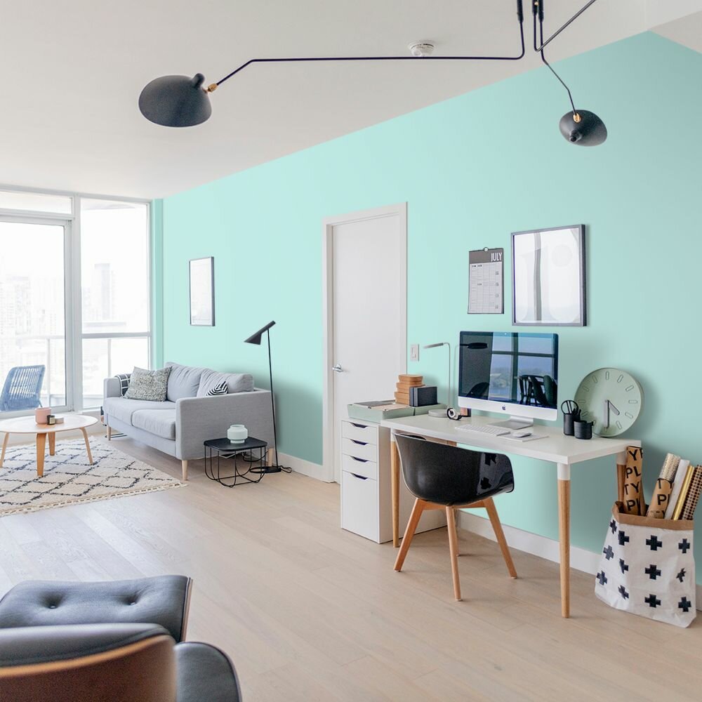 Краска моющаяся интерьерная для стен и потолков, Pollux INTERIOR без запаха, быстросохнущая, акриловая, матовое покрытие, цвет NCS S 0530-B60G, 1л.