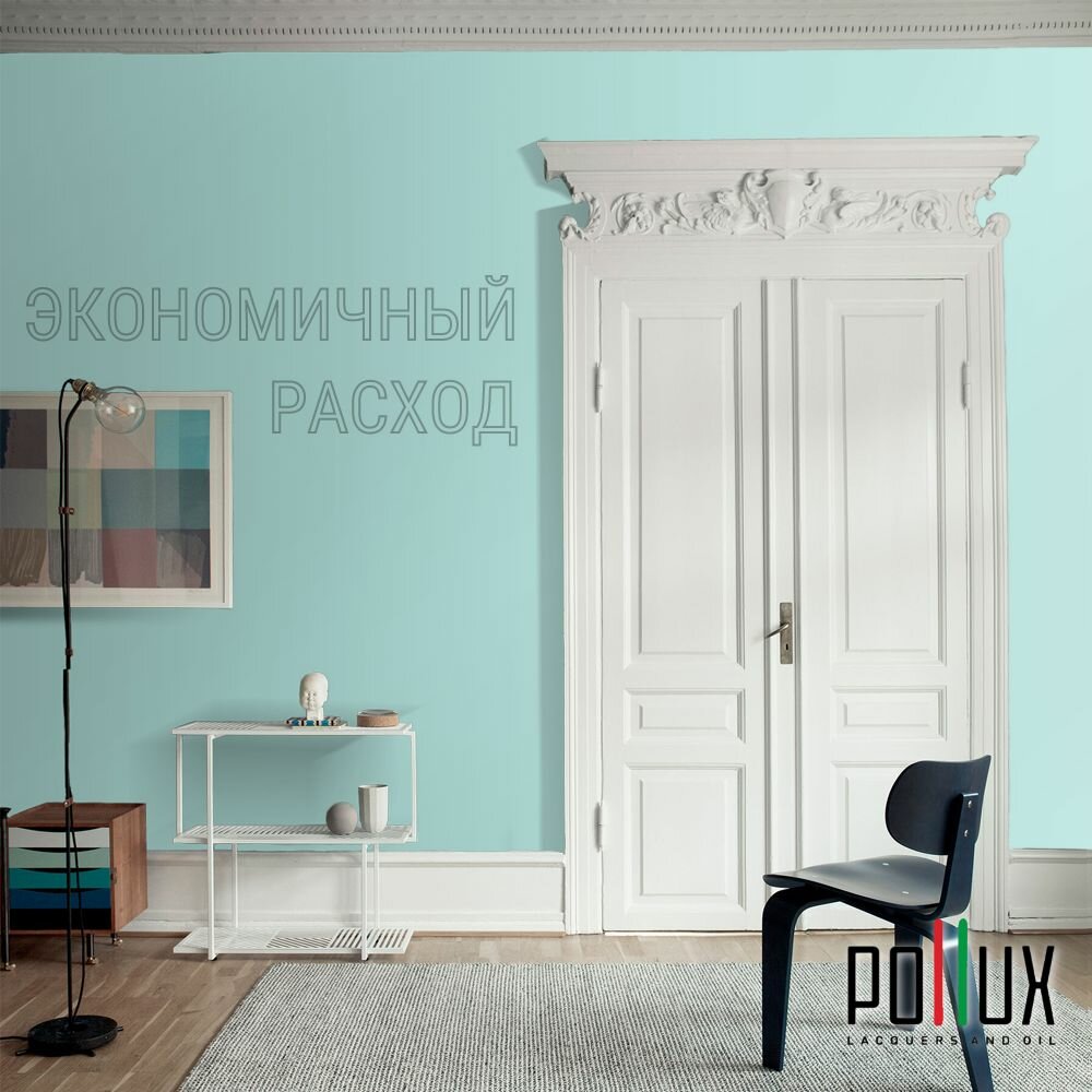 Краска моющаяся интерьерная для стен и потолков, Pollux INTERIOR без запаха, быстросохнущая, акриловая, матовое покрытие, цвет NCS S 1040-B60G, 1л.