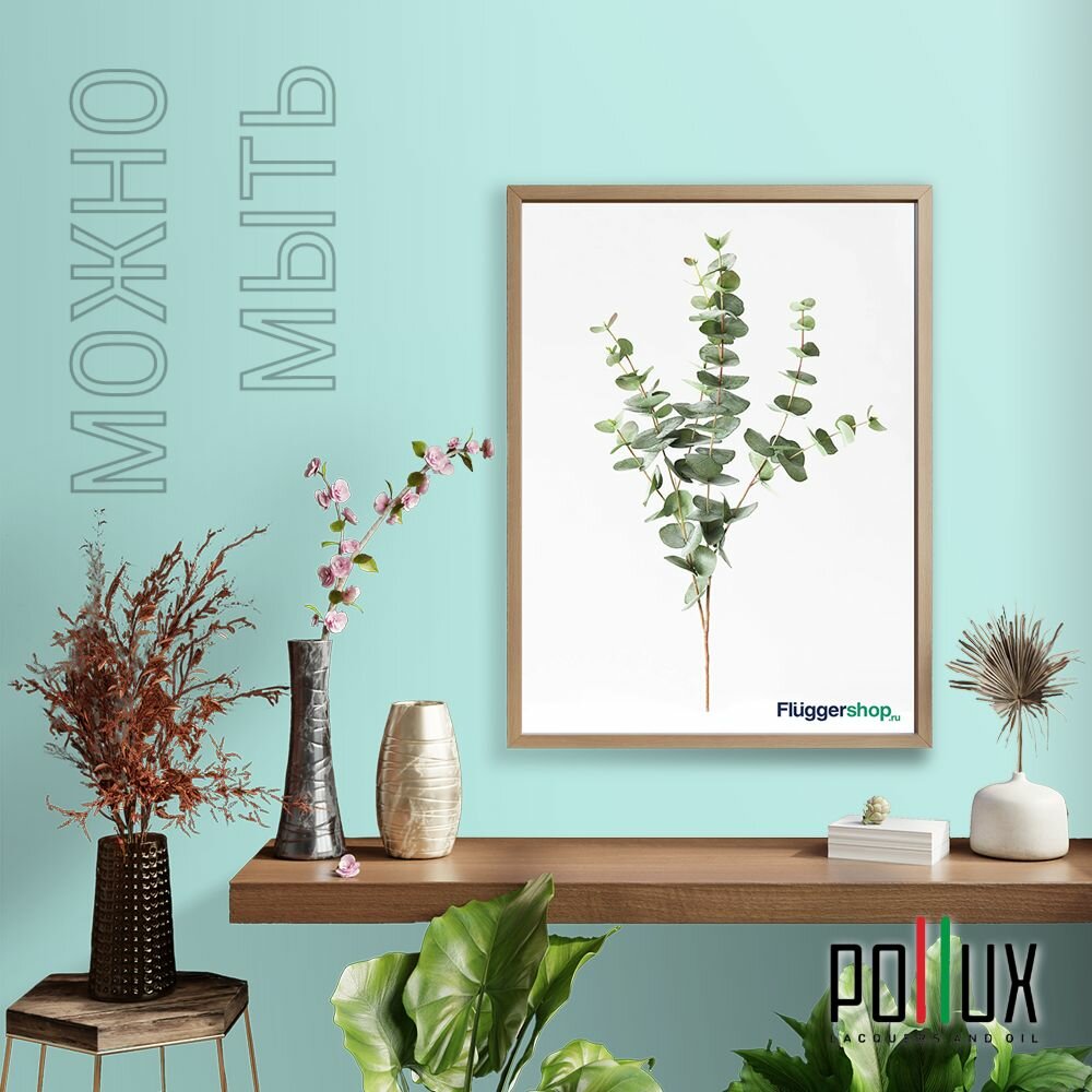 Краска моющаяся интерьерная для стен и потолков, Pollux INTERIOR без запаха, быстросохнущая, акриловая, матовое покрытие, цвет NCS S 1030-B60G, 1л.