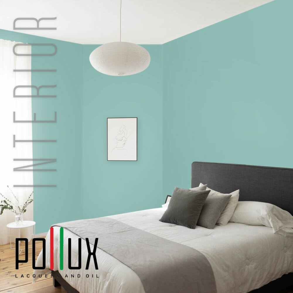 Краска моющаяся интерьерная для стен и потолков, Pollux INTERIOR без запаха, быстросохнущая, акриловая, матовое покрытие, цвет NCS S 2030-B60G, 1л.