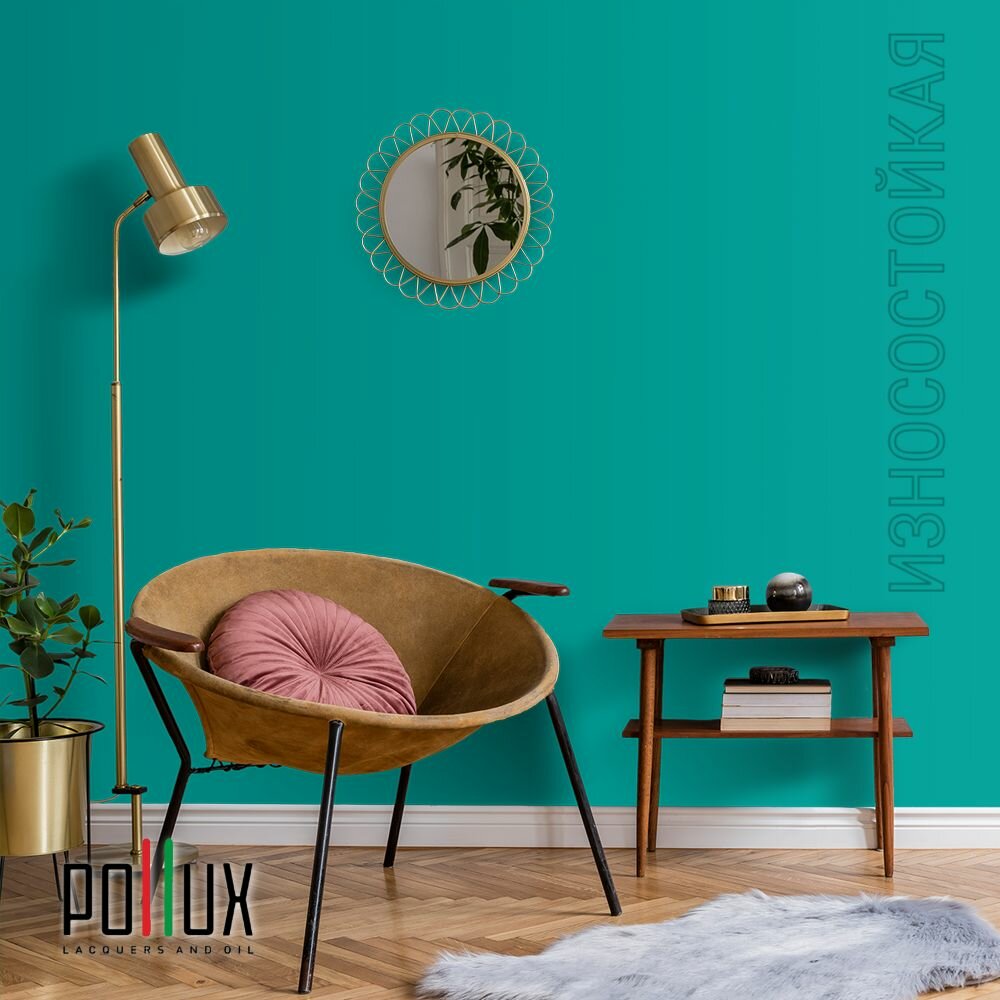 Краска моющаяся интерьерная для стен и потолков, Pollux INTERIOR без запаха, быстросохнущая, акриловая, матовое покрытие, цвет NCS S 2555-B60G, 1л.