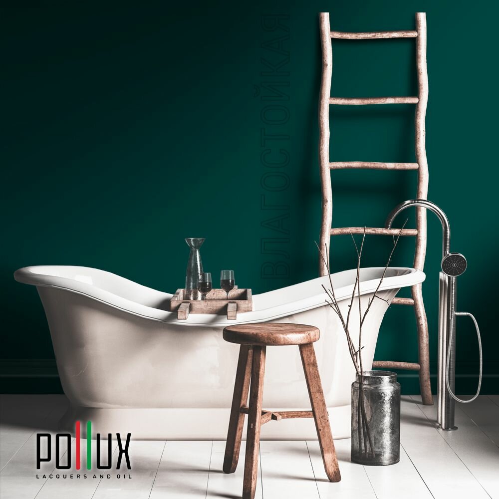 Краска моющаяся интерьерная для стен и потолков, Pollux INTERIOR без запаха, быстросохнущая, акриловая, матовое покрытие, цвет NCS S 6035-B60G, 1л.