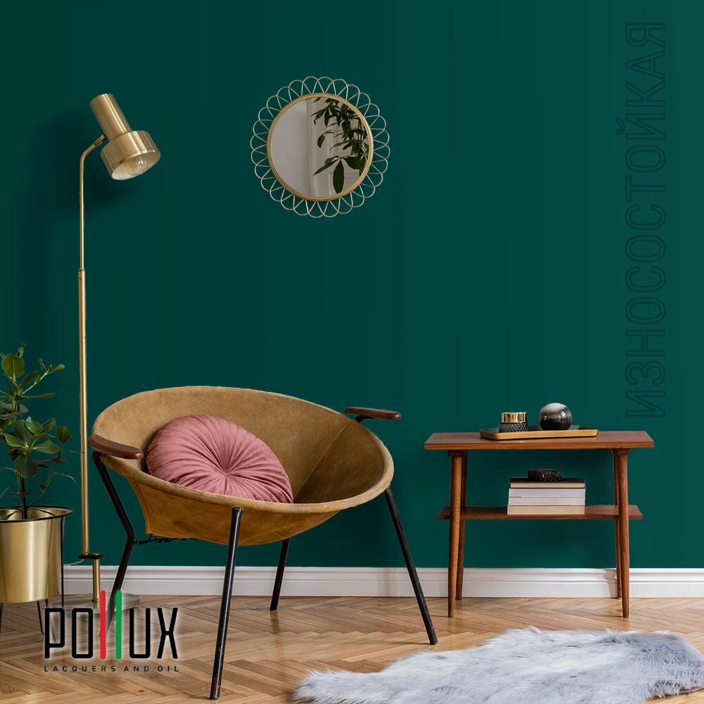 Краска моющаяся интерьерная для стен и потолков, Pollux INTERIOR без запаха, быстросохнущая, акриловая, матовое покрытие, цвет NCS S 4050-B60G, 1л.