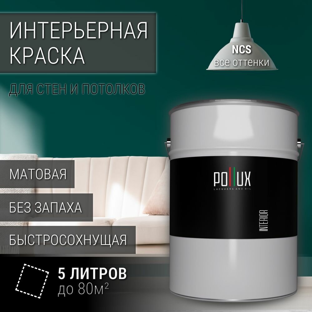Краска моющаяся интерьерная для стен и потолков, Pollux INTERIOR без запаха, быстросохнущая, акриловая, матовое покрытие, цвет NCS S 1020-B60G, 5л.
