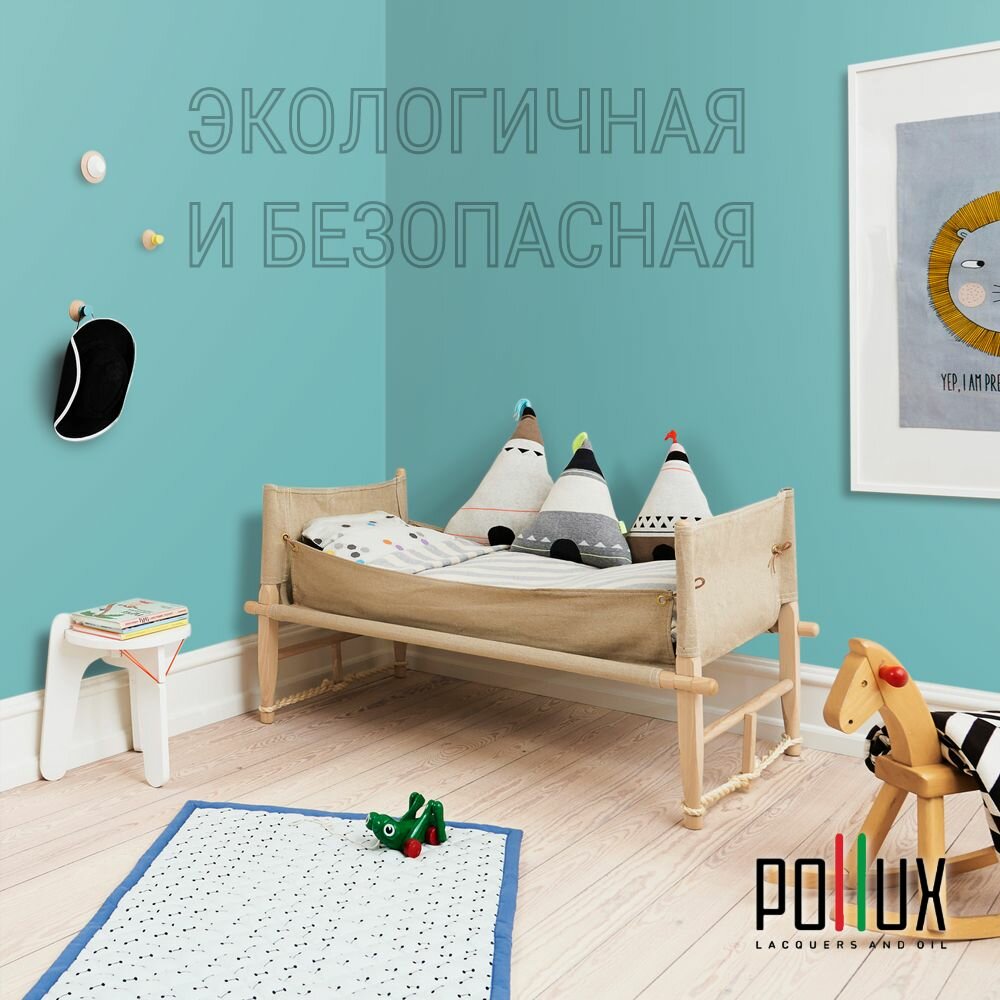 Краска моющаяся интерьерная для стен и потолков, Pollux INTERIOR без запаха, быстросохнущая, акриловая, матовое покрытие, цвет NCS S 5040-B40G, 1л.