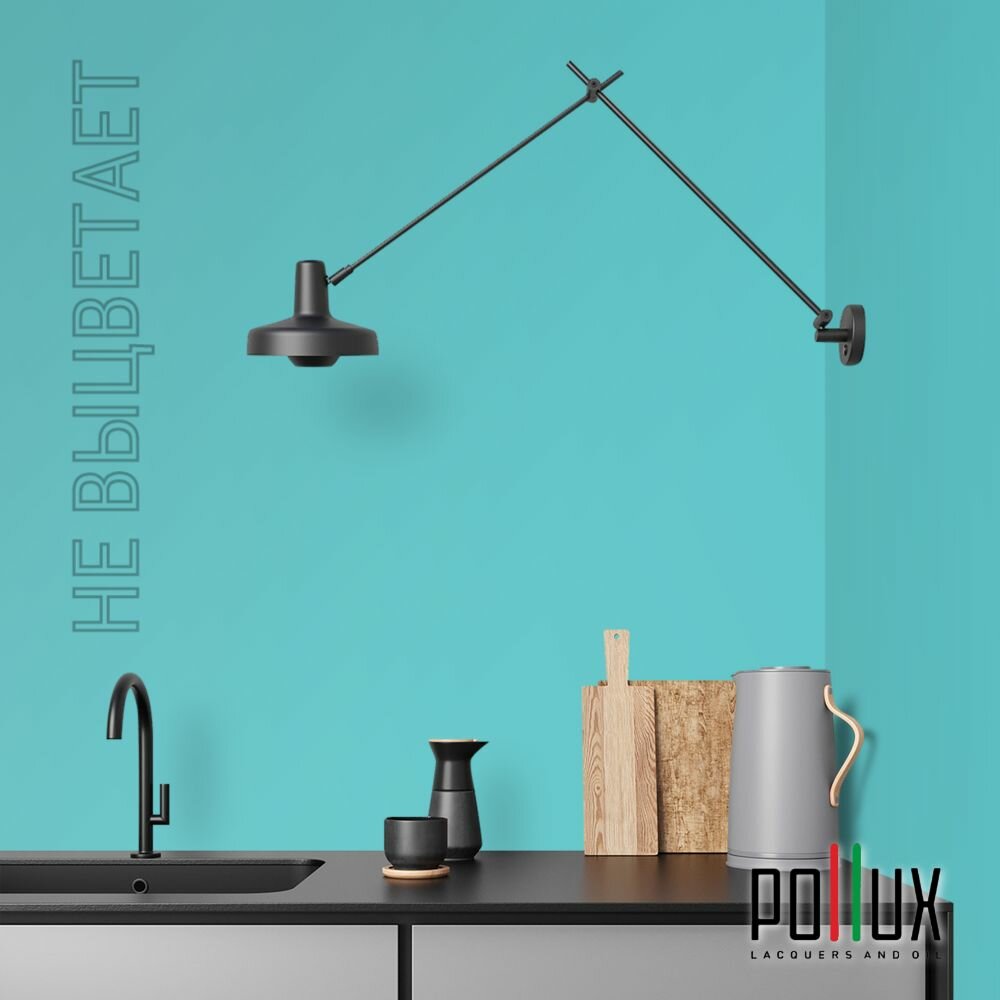 Краска моющаяся интерьерная для стен и потолков, Pollux INTERIOR без запаха, быстросохнущая, акриловая, матовое покрытие, цвет NCS S 1030-B40G, 1л.