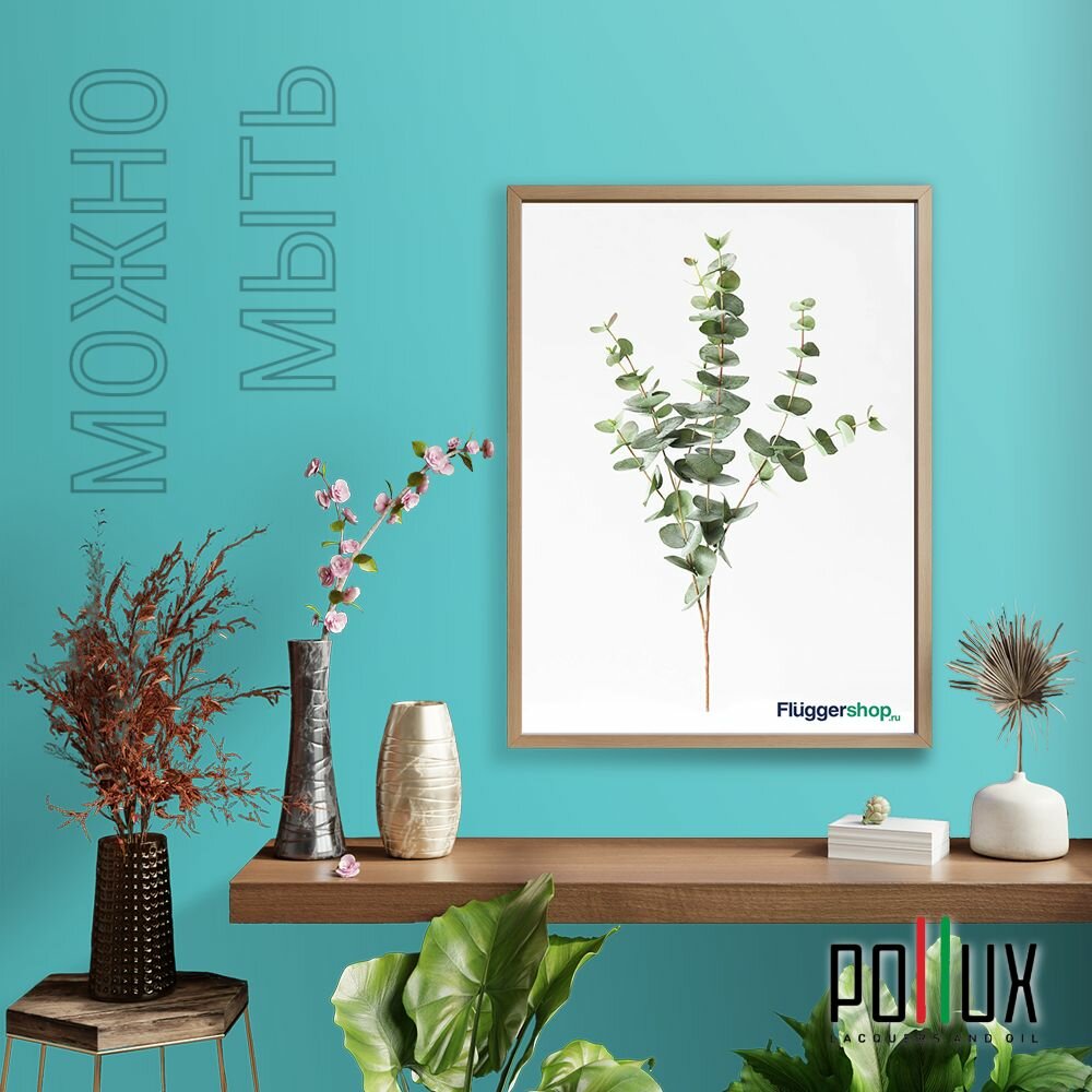 Краска моющаяся интерьерная для стен и потолков, Pollux INTERIOR без запаха, быстросохнущая, акриловая, матовое покрытие, цвет NCS S 2555-B40G, 1л.