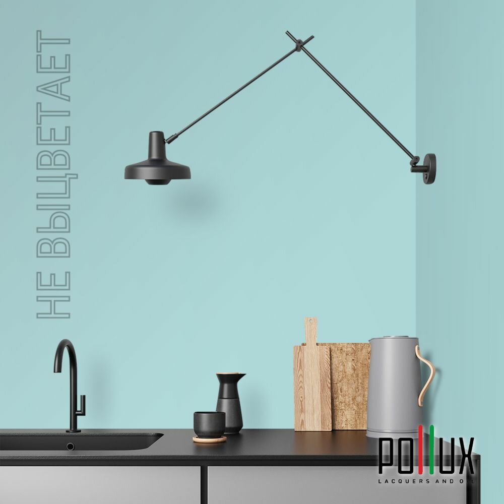 Краска моющаяся интерьерная для стен и потолков, Pollux INTERIOR без запаха, быстросохнущая, акриловая, матовое покрытие, цвет NCS S 0530-B40G, 1л.