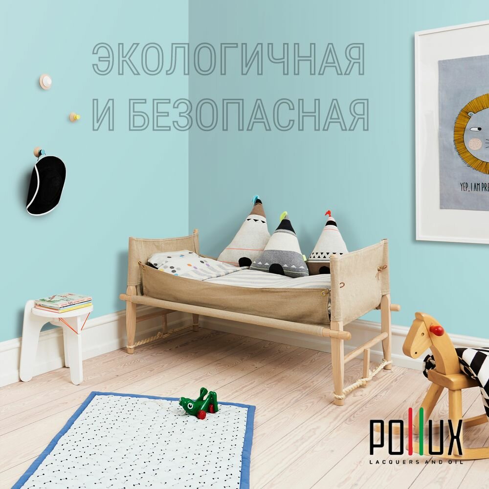 Краска моющаяся интерьерная для стен и потолков, Pollux INTERIOR без запаха, быстросохнущая, акриловая, матовое покрытие, цвет NCS S 5040-B40G, 1л.