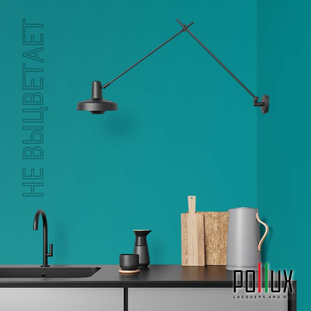 Краска моющаяся интерьерная для стен и потолков, Pollux INTERIOR без запаха, быстросохнущая, акриловая, матовое покрытие, цвет NCS S 1030-B40G, 1л.