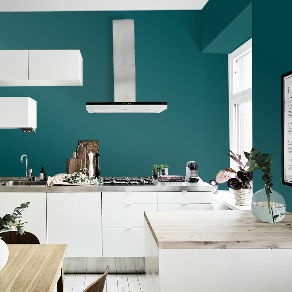 Краска моющаяся интерьерная для стен и потолков, Pollux INTERIOR без запаха, быстросохнущая, акриловая, матовое покрытие, цвет NCS S 4050-B40G, 1л.