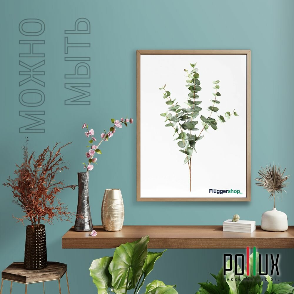 Краска моющаяся интерьерная для стен и потолков, Pollux INTERIOR без запаха, быстросохнущая, акриловая, матовое покрытие, цвет NCS S 5540-B40G, 1л.