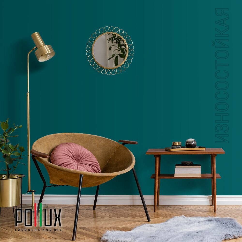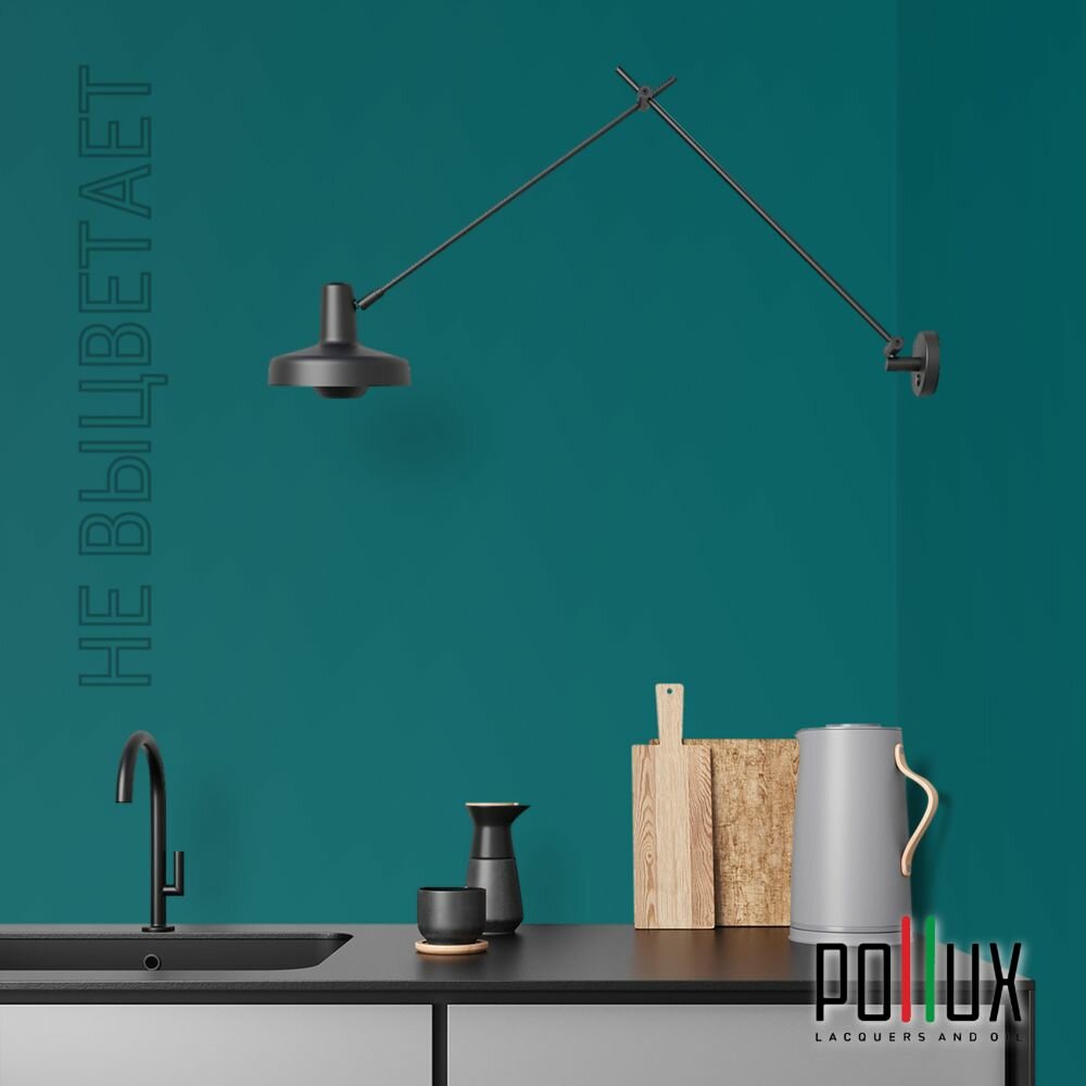 Краска моющаяся интерьерная для стен и потолков, Pollux INTERIOR без запаха, быстросохнущая, акриловая, матовое покрытие, цвет NCS S 4050-B40G, 1л.