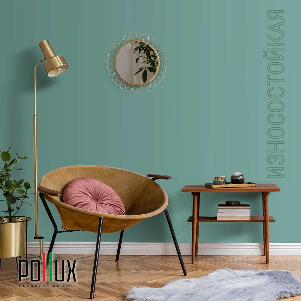 Краска моющаяся интерьерная для стен и потолков, Pollux INTERIOR без запаха, быстросохнущая, акриловая, матовое покрытие, цвет NCS S 6030-B70G, 1л.