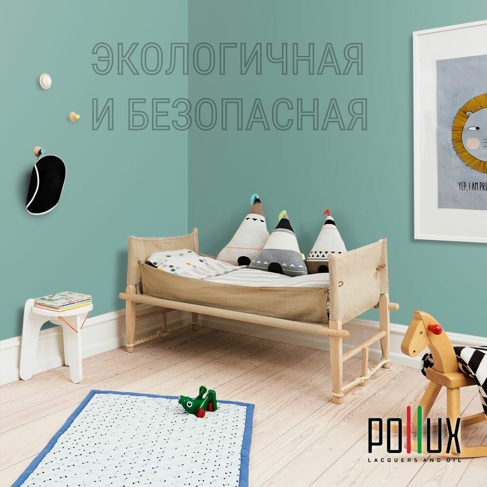 Краска моющаяся интерьерная для стен и потолков, Pollux INTERIOR без запаха, быстросохнущая, акриловая, матовое покрытие, цвет NCS S 4050-B70G, 1л.