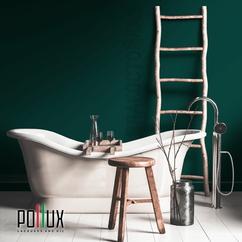 Краска моющаяся интерьерная для стен и потолков, Pollux INTERIOR без запаха, быстросохнущая, акриловая, матовое покрытие, цвет NCS S 4050-B70G, 1л.