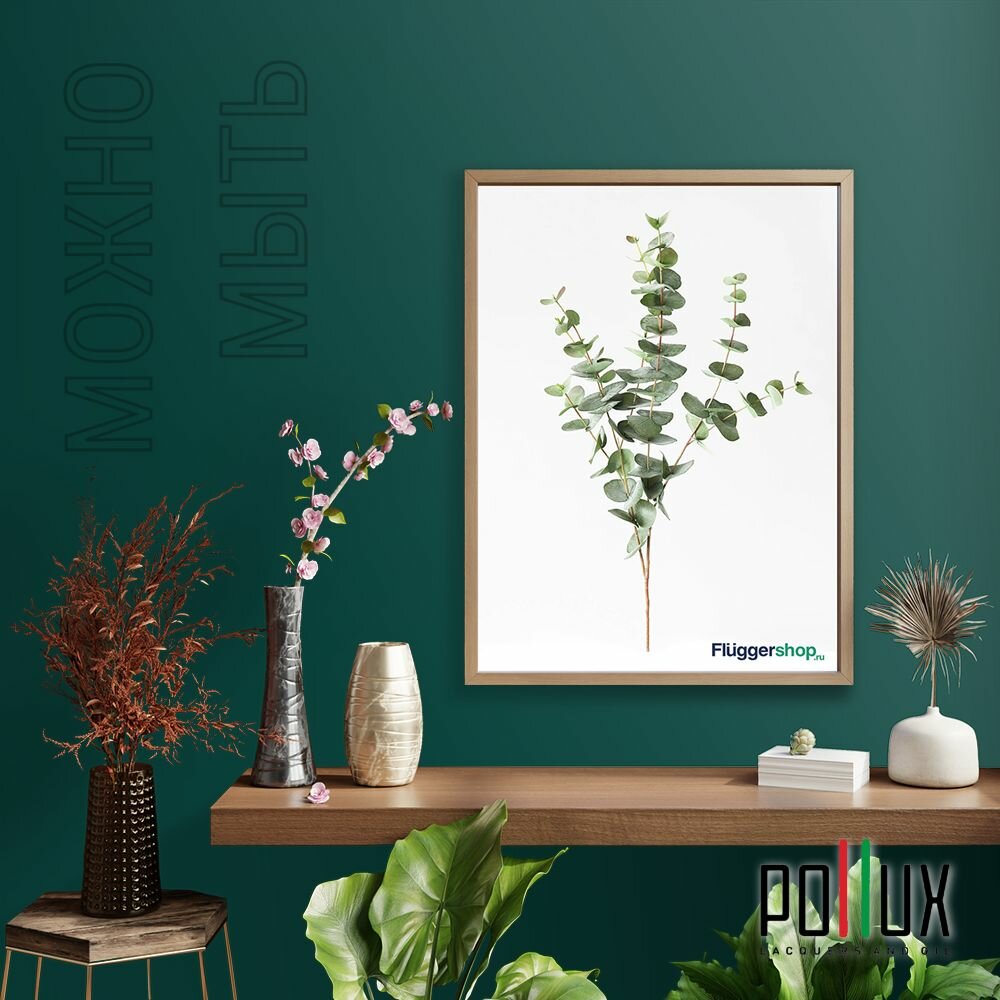 Краска моющаяся интерьерная для стен и потолков, Pollux INTERIOR без запаха, быстросохнущая, акриловая, матовое покрытие, цвет NCS S 6030-B70G, 1л.