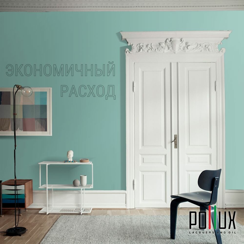 Краска моющаяся интерьерная для стен и потолков, Pollux INTERIOR без запаха, быстросохнущая, акриловая, матовое покрытие, цвет NCS S 0510-B70G, 1л.