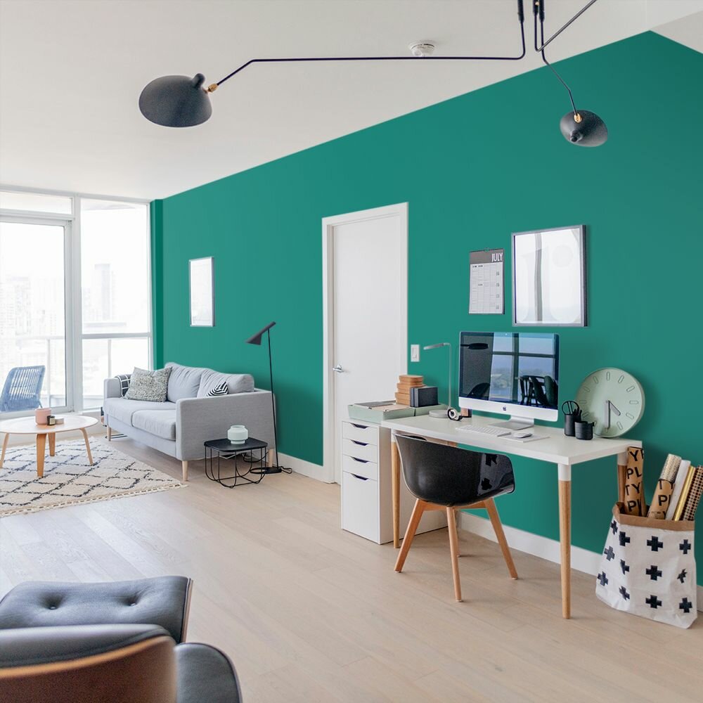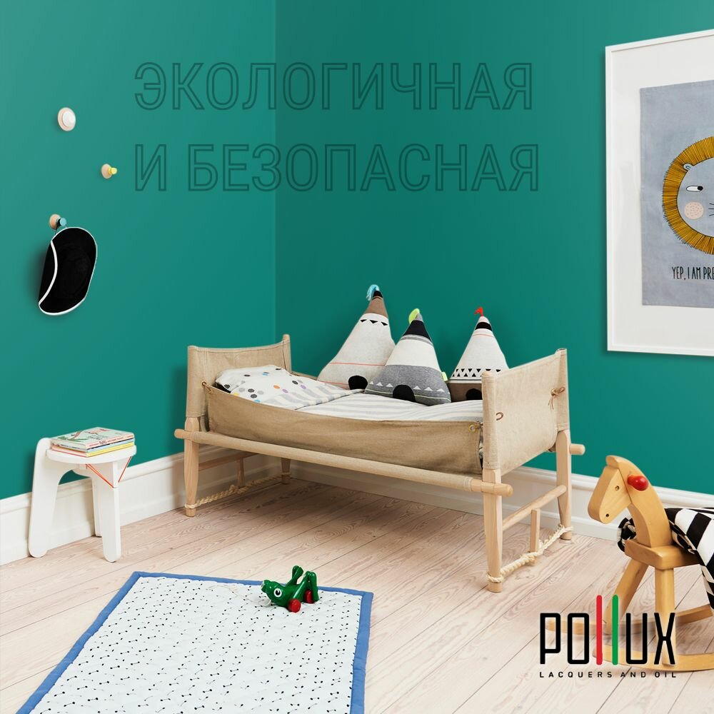 Краска моющаяся интерьерная для стен и потолков, Pollux INTERIOR без запаха, быстросохнущая, акриловая, матовое покрытие, цвет NCS S 4050-B70G, 1л.