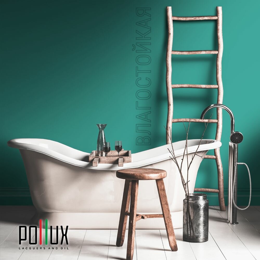 Краска моющаяся интерьерная для стен и потолков, Pollux INTERIOR без запаха, быстросохнущая, акриловая, матовое покрытие, цвет NCS S 8010-B70G, 1л.