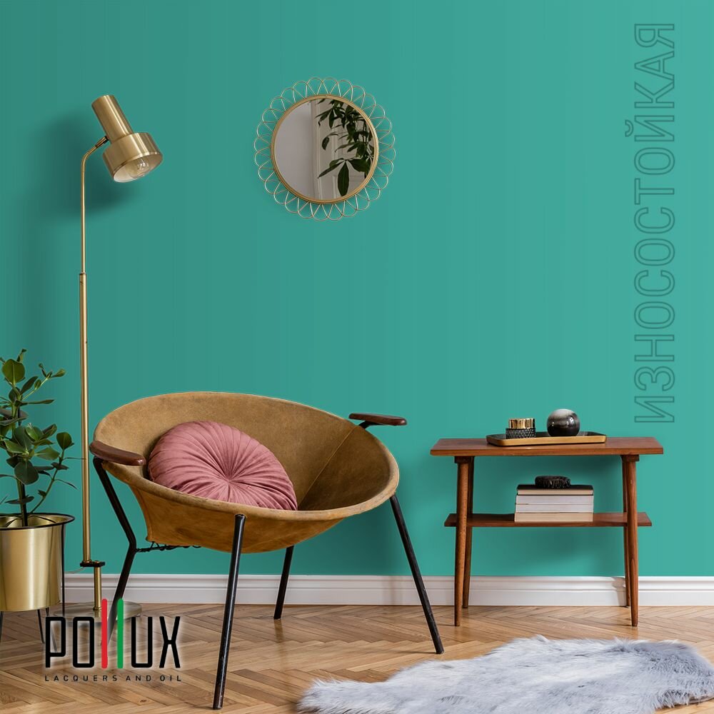 Краска моющаяся интерьерная для стен и потолков, Pollux INTERIOR без запаха, быстросохнущая, акриловая, матовое покрытие, цвет NCS S 6030-B70G, 1л.