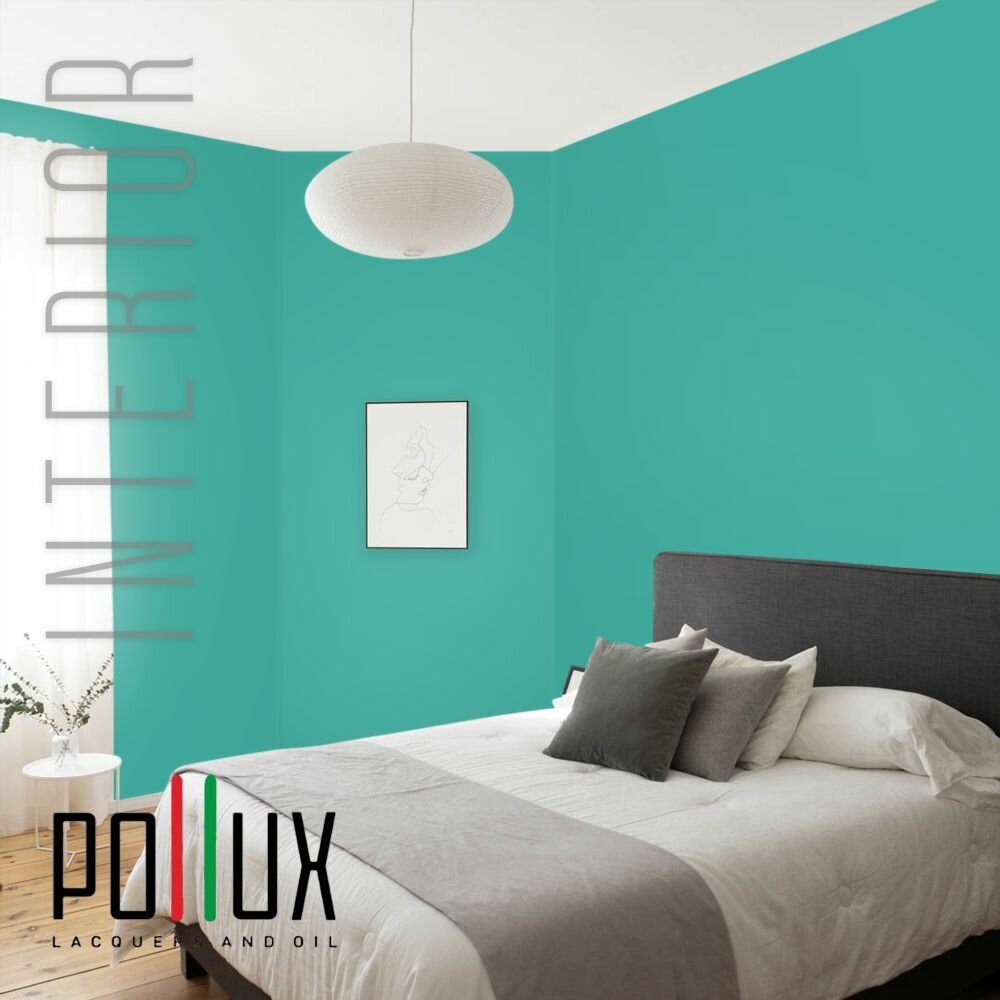 Краска моющаяся интерьерная для стен и потолков, Pollux INTERIOR без запаха, быстросохнущая, акриловая, матовое покрытие, цвет NCS S 0510-B70G, 1л.