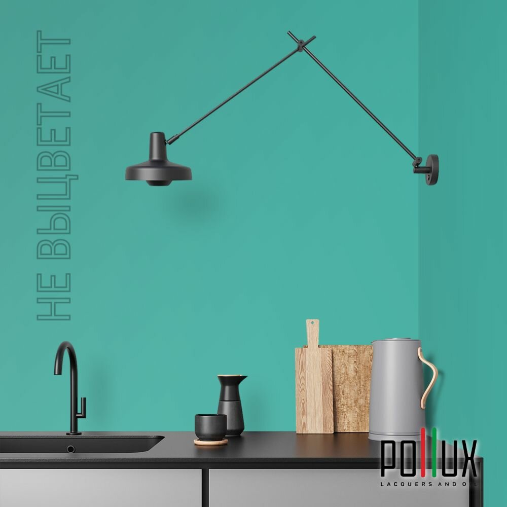 Краска моющаяся интерьерная для стен и потолков, Pollux INTERIOR без запаха, быстросохнущая, акриловая, матовое покрытие, цвет NCS S 1030-B70G, 1л.