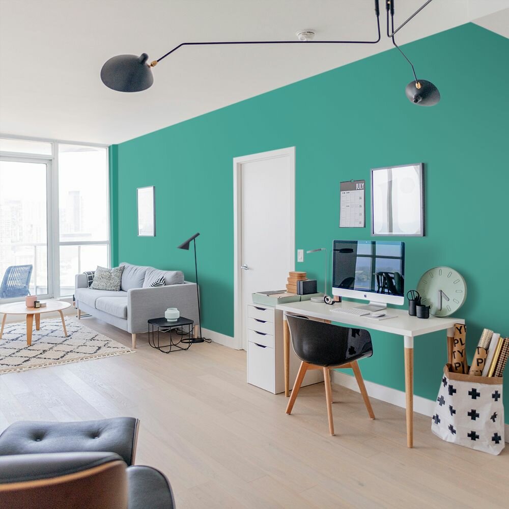 Краска моющаяся интерьерная для стен и потолков, Pollux INTERIOR без запаха, быстросохнущая, акриловая, матовое покрытие, цвет NCS S 4050-B70G, 1л.