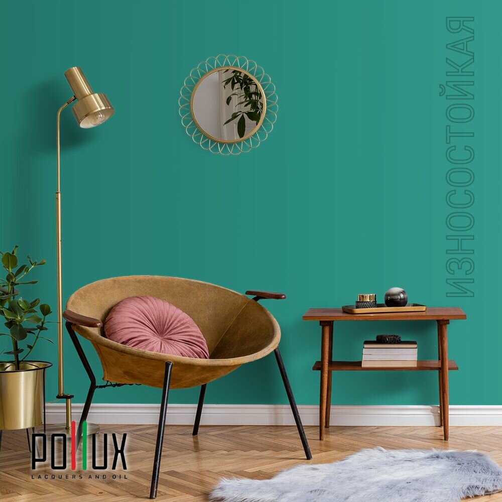 Краска моющаяся интерьерная для стен и потолков, Pollux INTERIOR без запаха, быстросохнущая, акриловая, матовое покрытие, цвет NCS S 5030-B70G, 1л.