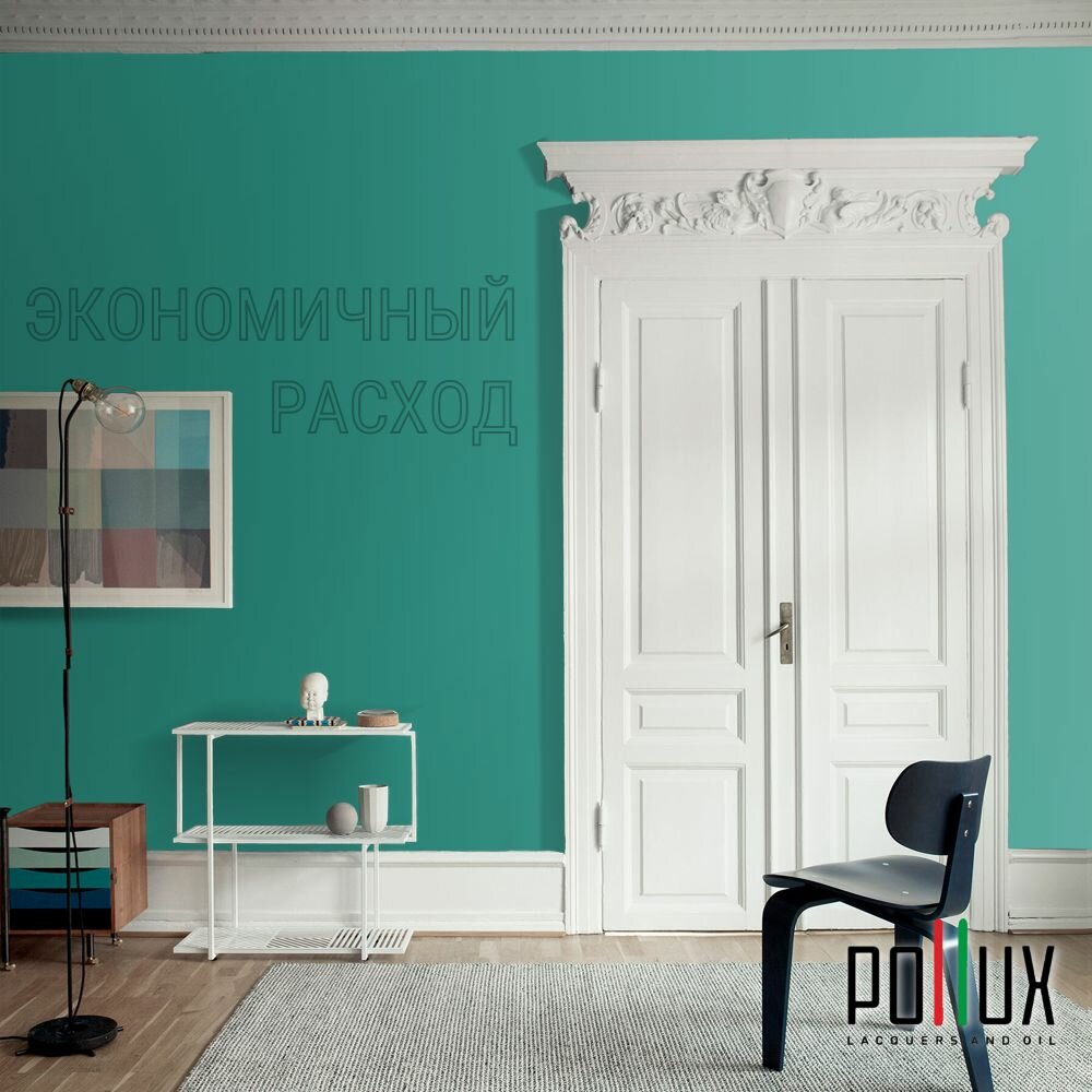 Краска моющаяся интерьерная для стен и потолков, Pollux INTERIOR без запаха, быстросохнущая, акриловая, матовое покрытие, цвет NCS S 1030-B70G, 1л.