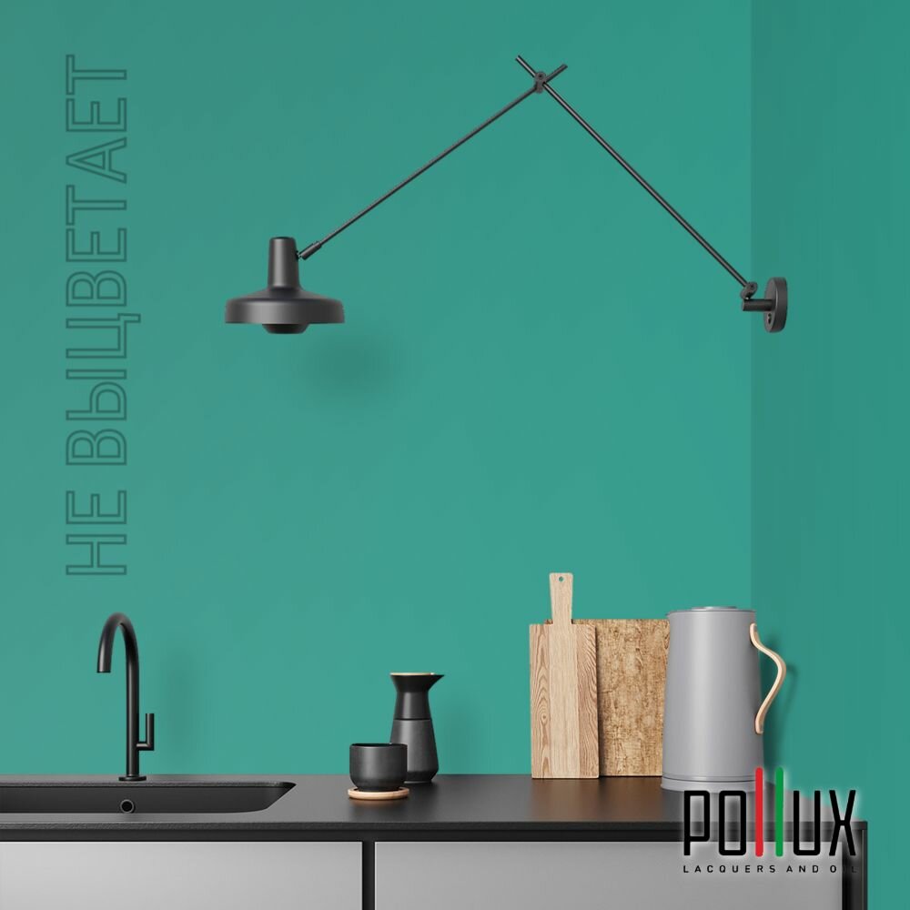 Краска моющаяся интерьерная для стен и потолков, Pollux INTERIOR без запаха, быстросохнущая, акриловая, матовое покрытие, цвет NCS S 6030-B70G, 1л.