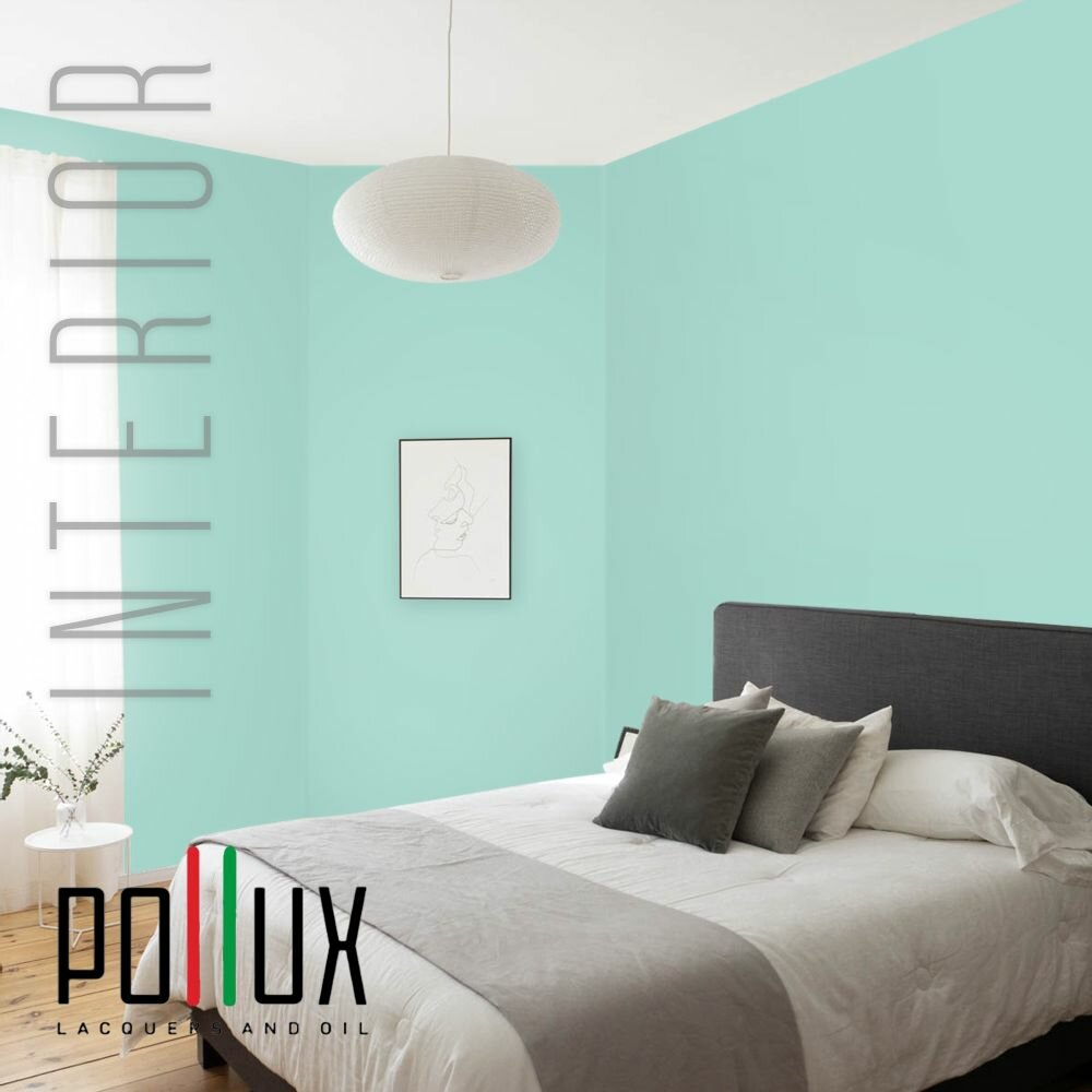 Краска моющаяся интерьерная для стен и потолков, Pollux INTERIOR без запаха, быстросохнущая, акриловая, матовое покрытие, цвет NCS S 0510-B70G, 1л.