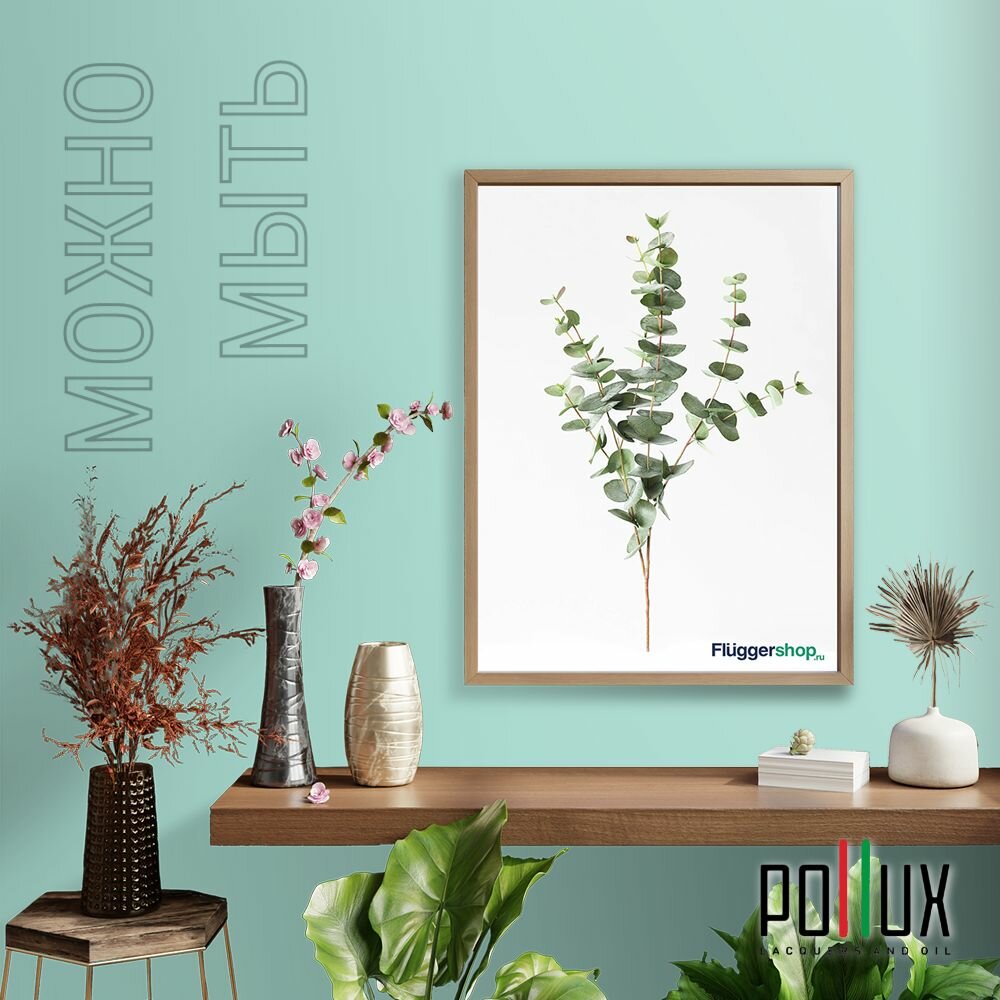 Краска моющаяся интерьерная для стен и потолков, Pollux INTERIOR без запаха, быстросохнущая, акриловая, матовое покрытие, цвет NCS S 6020-B70G, 1л.