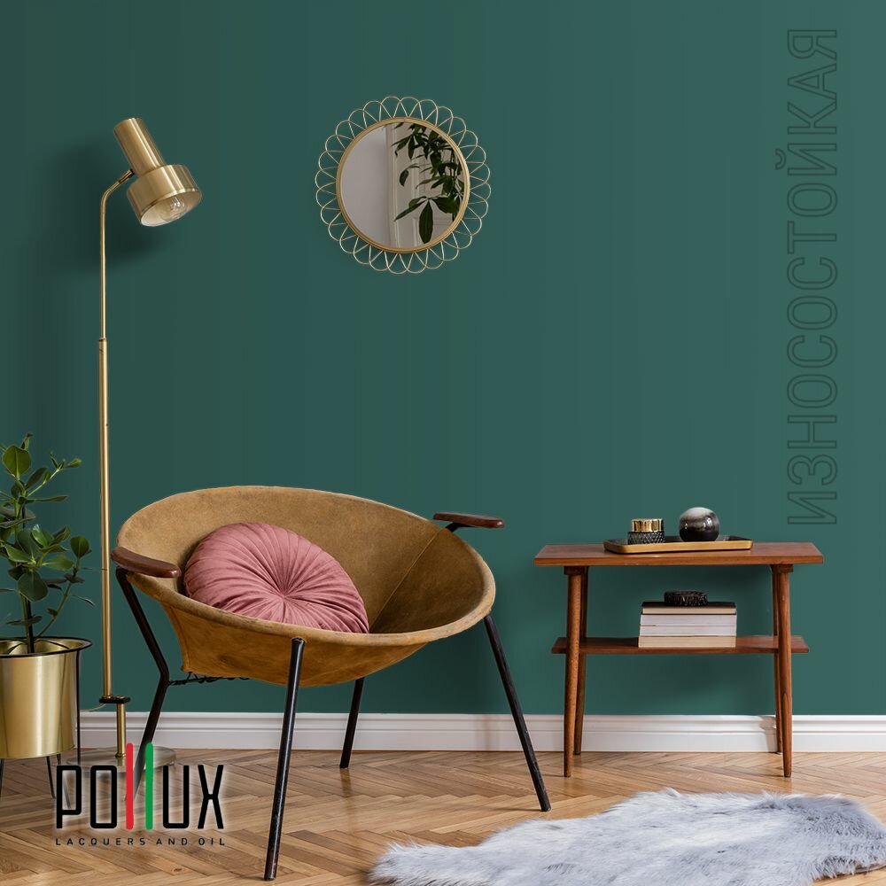 Краска моющаяся интерьерная для стен и потолков, Pollux INTERIOR без запаха, быстросохнущая, акриловая, матовое покрытие, цвет NCS S 6030-B70G, 1л.
