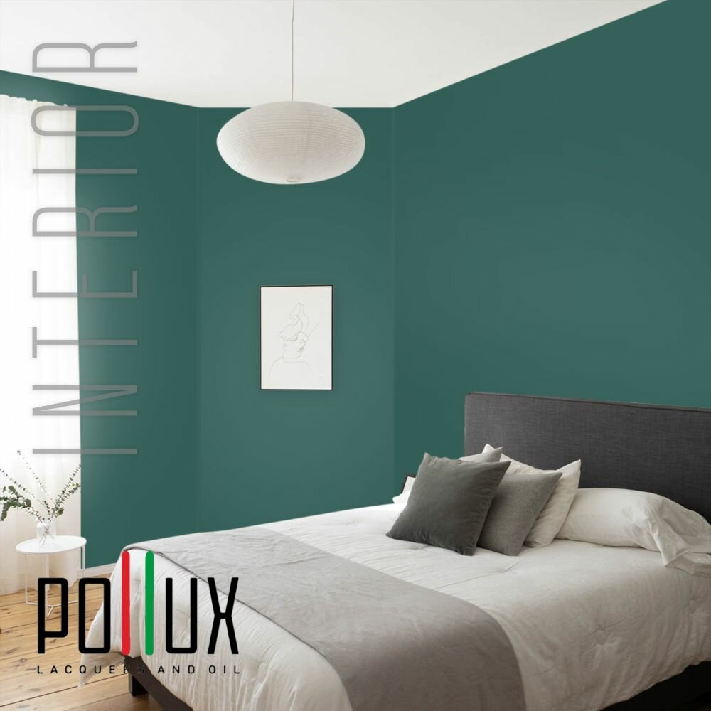 Краска моющаяся интерьерная для стен и потолков, Pollux INTERIOR без запаха, быстросохнущая, акриловая, матовое покрытие, цвет NCS S 4050-B70G, 1л.