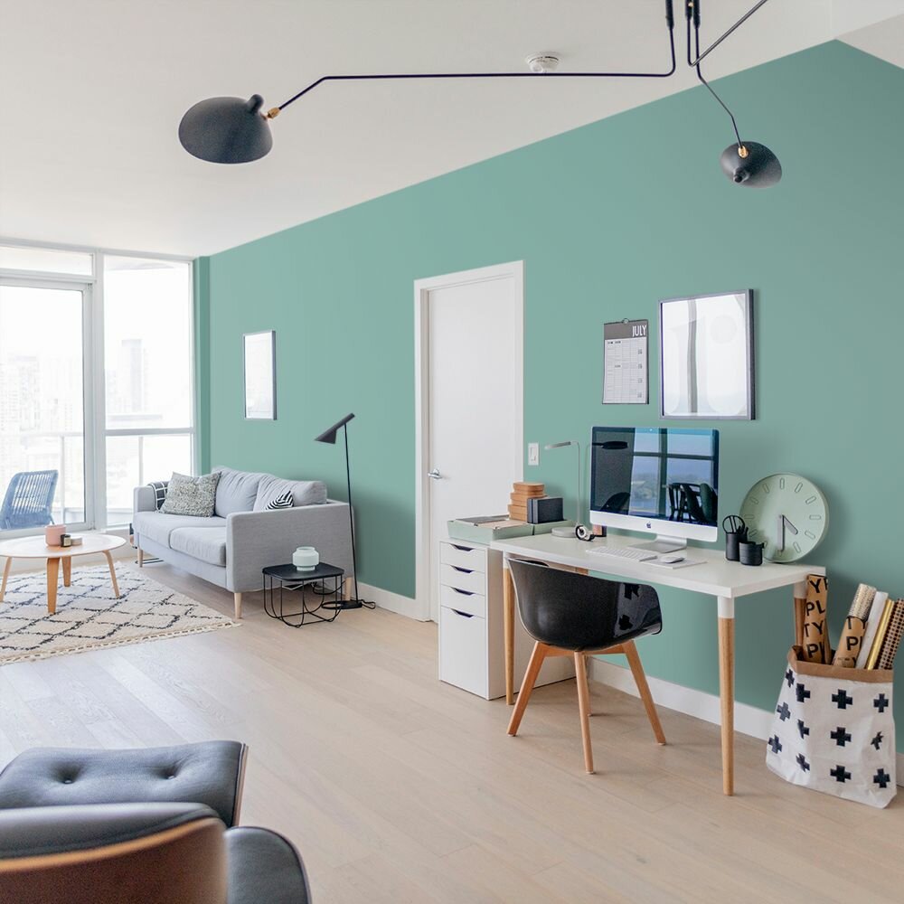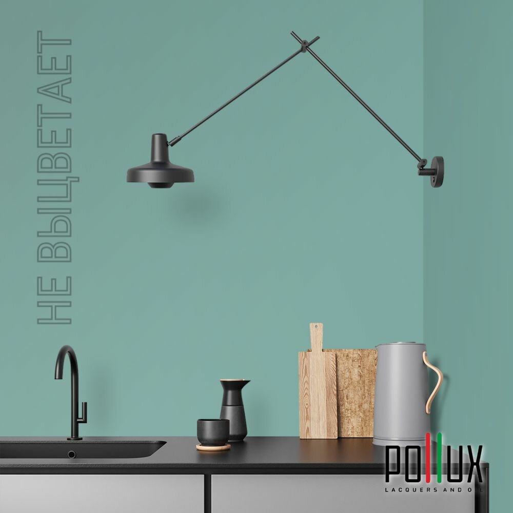 Краска моющаяся интерьерная для стен и потолков, Pollux INTERIOR без запаха, быстросохнущая, акриловая, матовое покрытие, цвет NCS S 6030-B70G, 1л.
