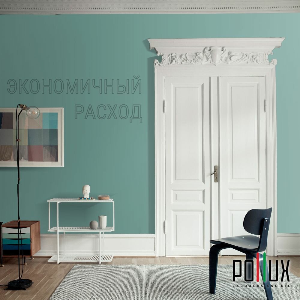 Краска моющаяся интерьерная для стен и потолков, Pollux INTERIOR без запаха, быстросохнущая, акриловая, матовое покрытие, цвет NCS S 1050-B70G, 1л.