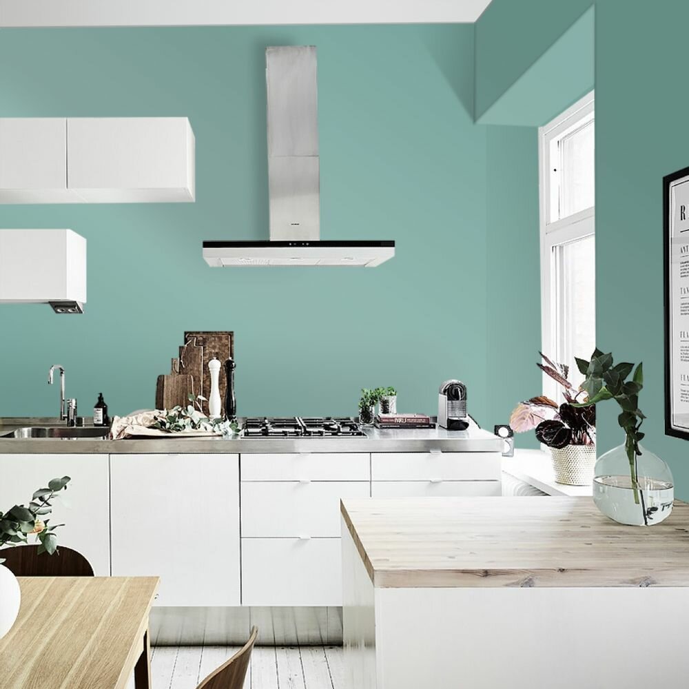 Краска моющаяся интерьерная для стен и потолков, Pollux INTERIOR без запаха, быстросохнущая, акриловая, матовое покрытие, цвет NCS S 4050-B70G, 1л.