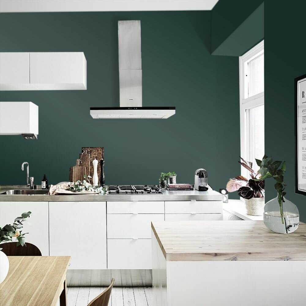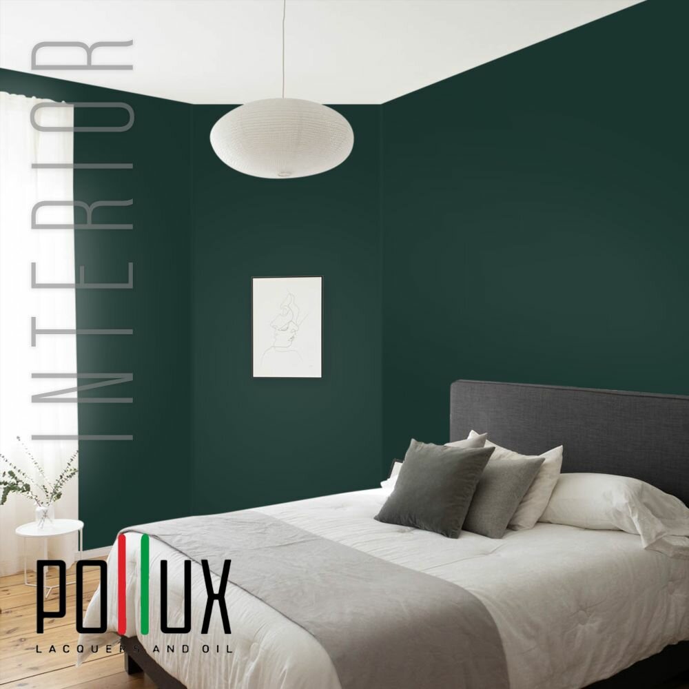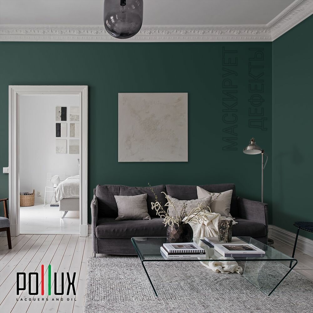 Краска моющаяся интерьерная для стен и потолков, Pollux INTERIOR без запаха, быстросохнущая, акриловая, матовое покрытие, цвет NCS S 4050-B70G, 1л.
