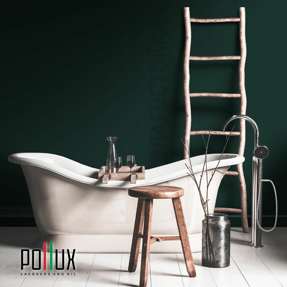 Краска моющаяся интерьерная для стен и потолков, Pollux INTERIOR без запаха, быстросохнущая, акриловая, матовое покрытие, цвет NCS S 8010-B70G, 1л.