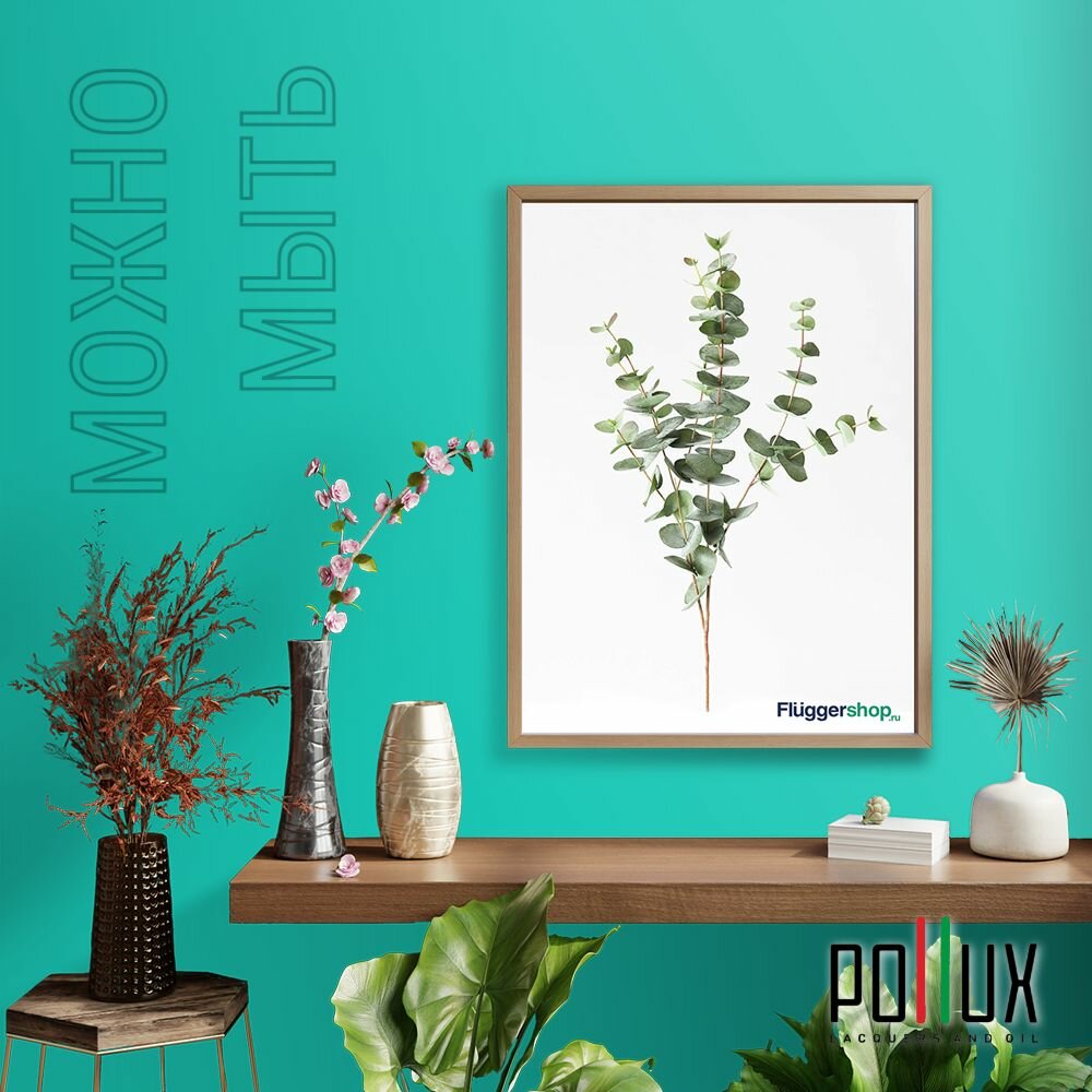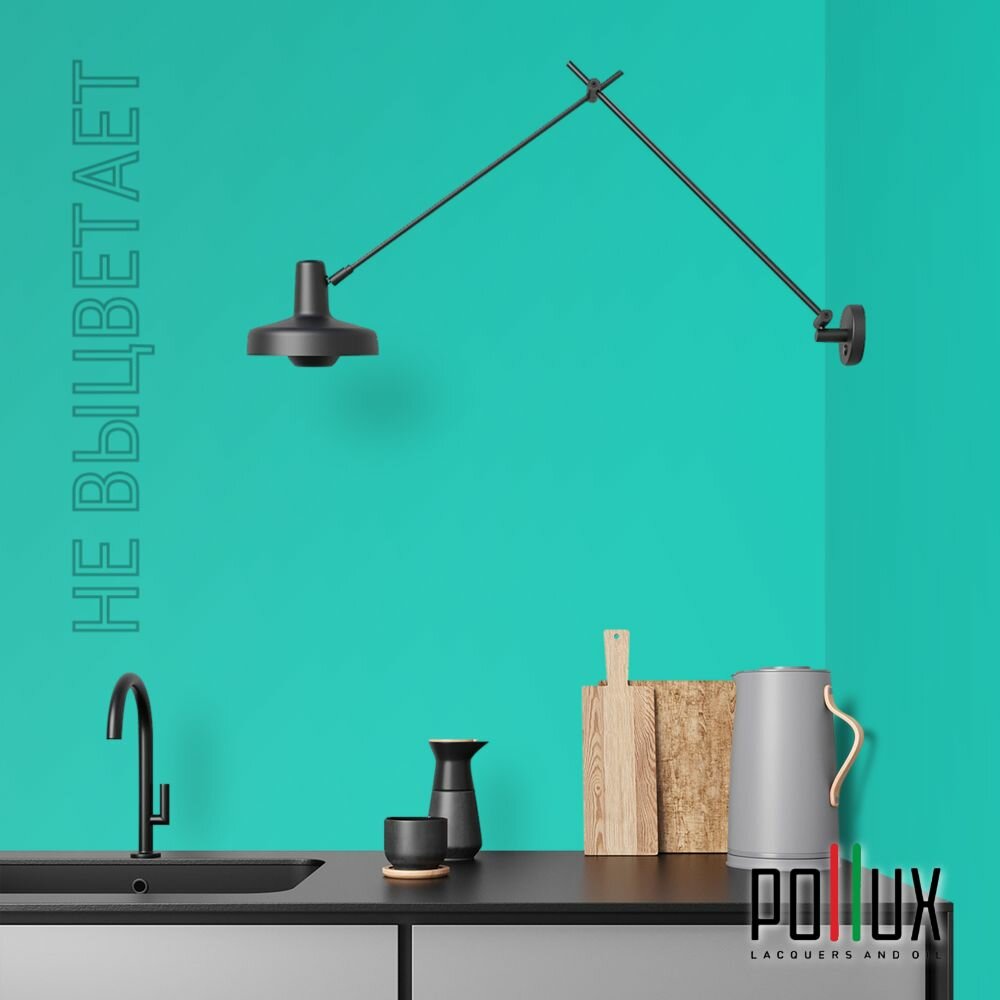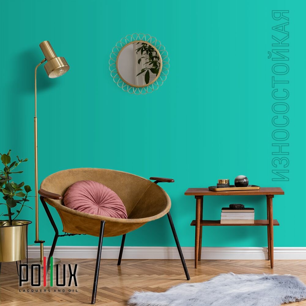 Краска моющаяся интерьерная для стен и потолков, Pollux INTERIOR без запаха, быстросохнущая, акриловая, матовое покрытие, цвет NCS S 6030-B70G, 1л.