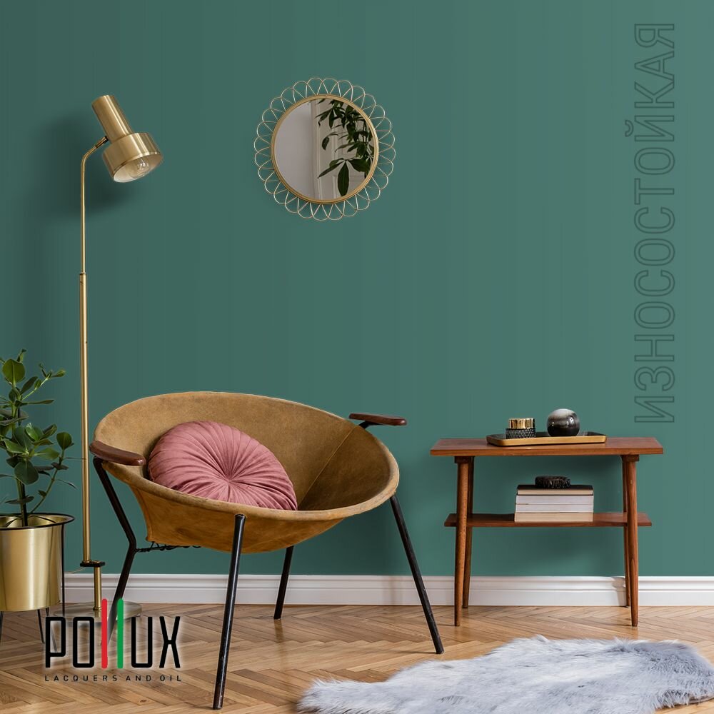 Краска моющаяся интерьерная для стен и потолков, Pollux INTERIOR без запаха, быстросохнущая, акриловая, матовое покрытие, цвет NCS S 6030-B70G, 1л.